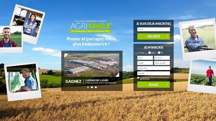 « AGRISMILE » est un concours original et ludique, dont le principe est simple et participatif : des photos ou vidéos au sein d’une ferme (agriculteurs, animaux, matériel…) doivent être déposées pendant le concours sur le site Internet http://www.agri-smile.fr. Les internautes pourront alors « liker » leurs photos préférées. Les participants : agriculteurs, concessionnaires, salariés ou propriétaires agricoles peuvent encourager les internautes à voter pour leur photo.