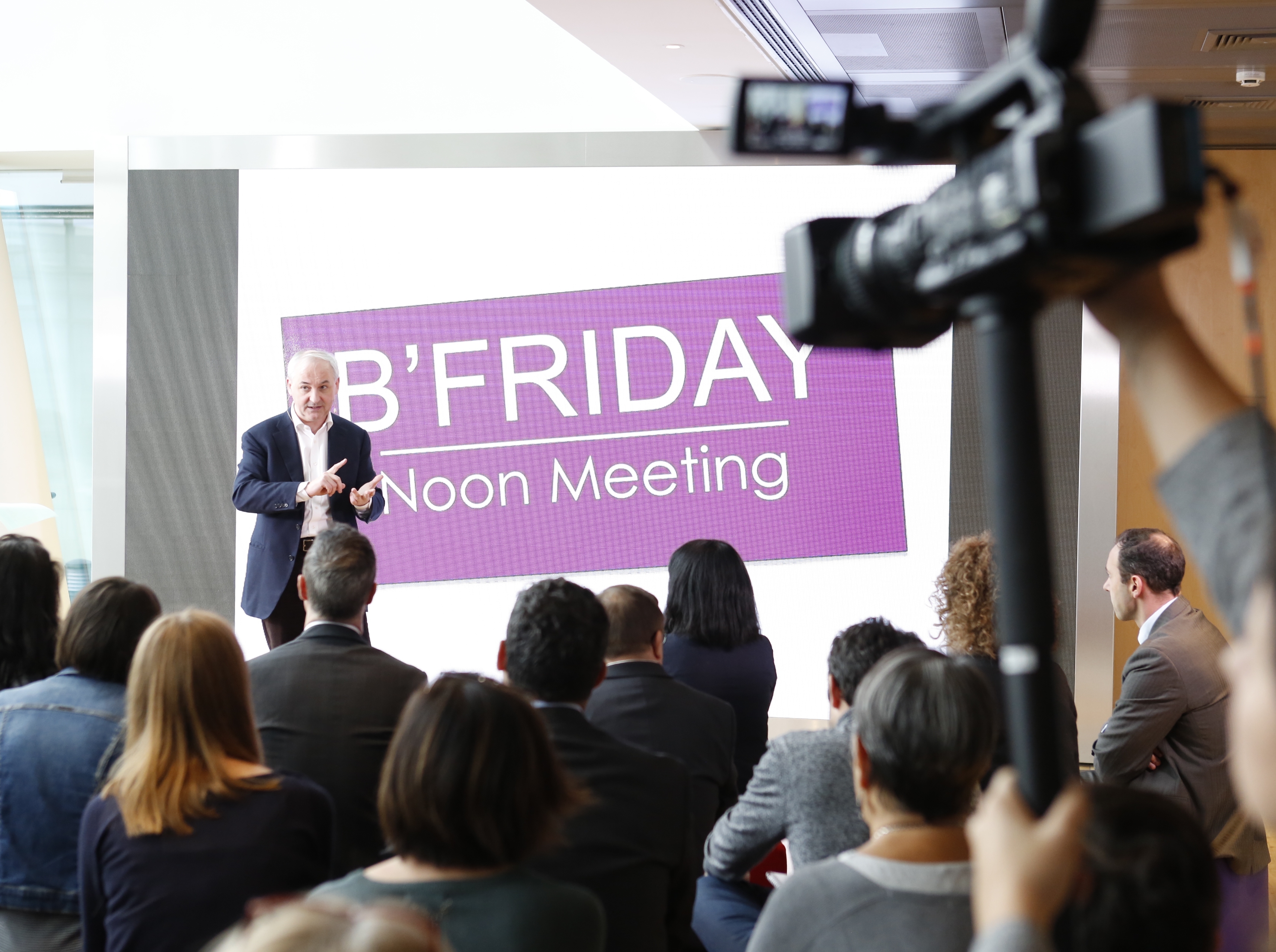 Intervention de François Pérol lors d'un B'Friday Noon Meeting devant des collaborateurs de BPCE SA, avec captation vidéo de l'événement.