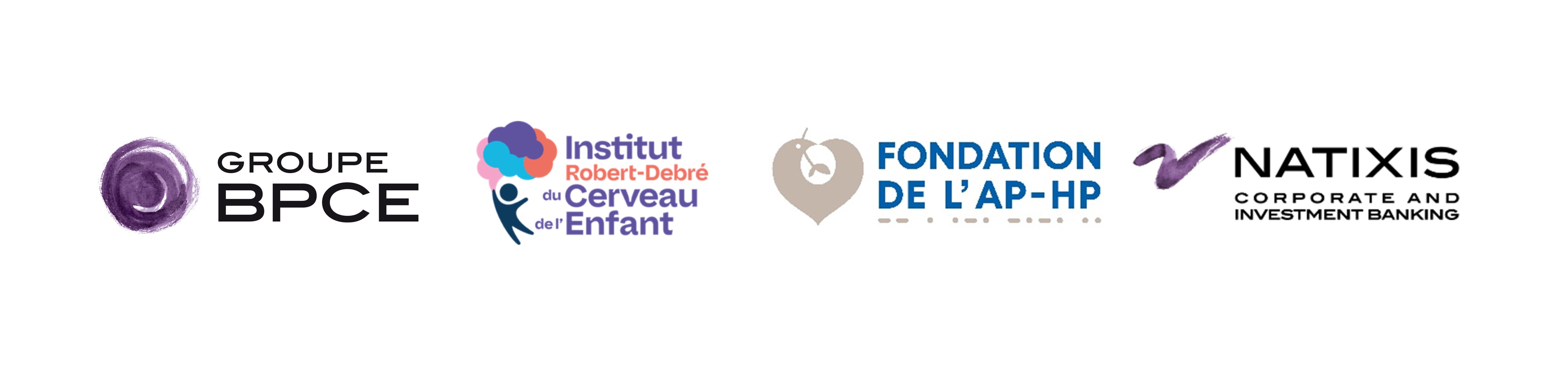 Logos du Groupe BPCE, de l'Institut Robert-Debré du Cerveau de l'Enfant, de la Fondation de l'AP-HP et de Natixis Corporate and Investment Banking, illustrant un partenariat ou une collaboration institutionnelle.