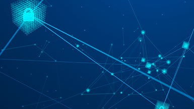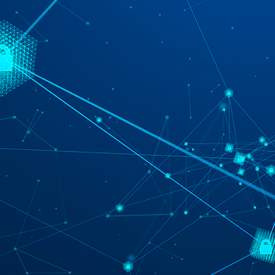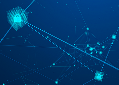 Illustration conceptuelle d'un réseau blockchain sécurisé, symbolisé par des cadenas connectés sur un fond bleu numérique.