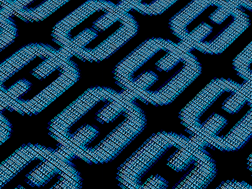 Illustration numérique représentant des maillons de chaîne stylisés en symboles binaires, évoquant le concept de la blockchain.