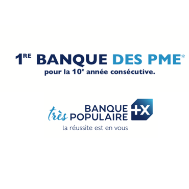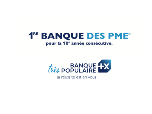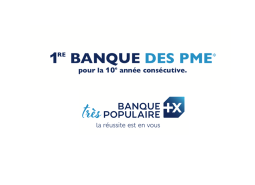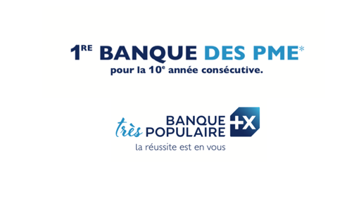 Visuel mettant en avant Banque Populaire comme première banque des PME pour la 10e année consécutive avec le logo adapté « très Banque Populaire ».