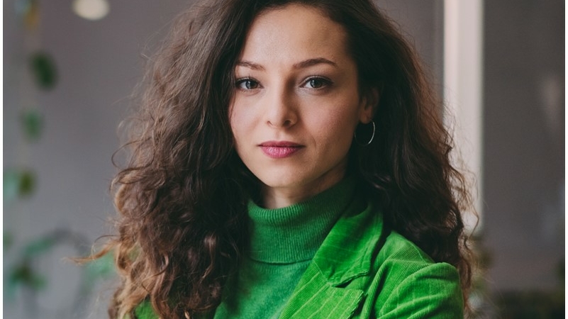 Portrait d'une femme d'affaires dans un environnement professionnel, mettant en avant l'innovation, l'entrepreneuriat et le développement durable, correspondant à la thématique de nouvelles solutions vertes proposées par Banque Populaire pour les PME et ETI.