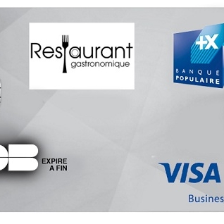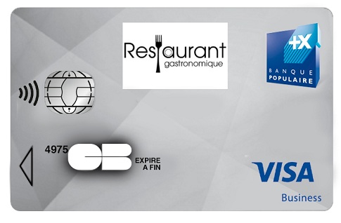 Carte bancaire Banque Populaire Business personnalisée avec le logo d’une entreprise de type restaurant gastronomique.