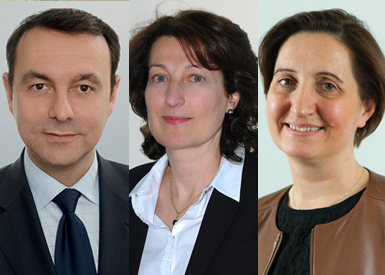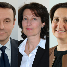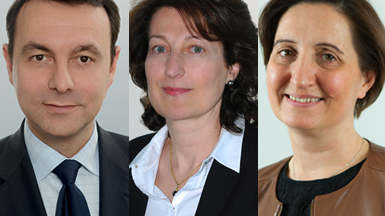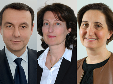 Portraits des nouveaux directeurs des Ressources humaines nommés chez Natixis : Laurent Cauchy, Sylvie Soulère-Guidat et Marie-Hélène Vercaemer.