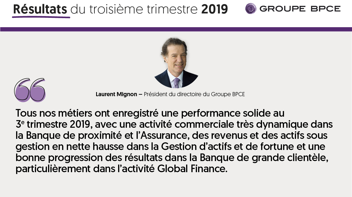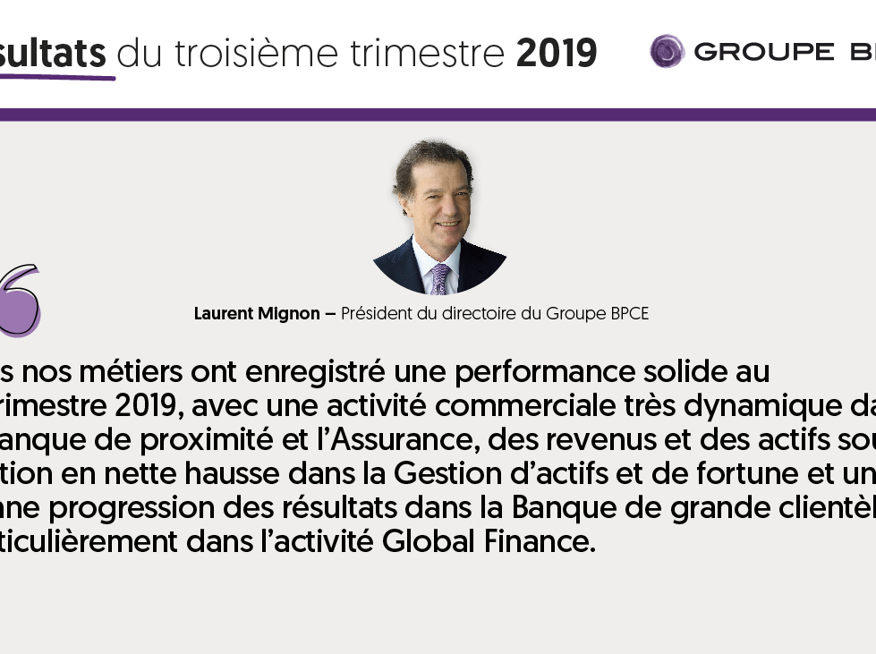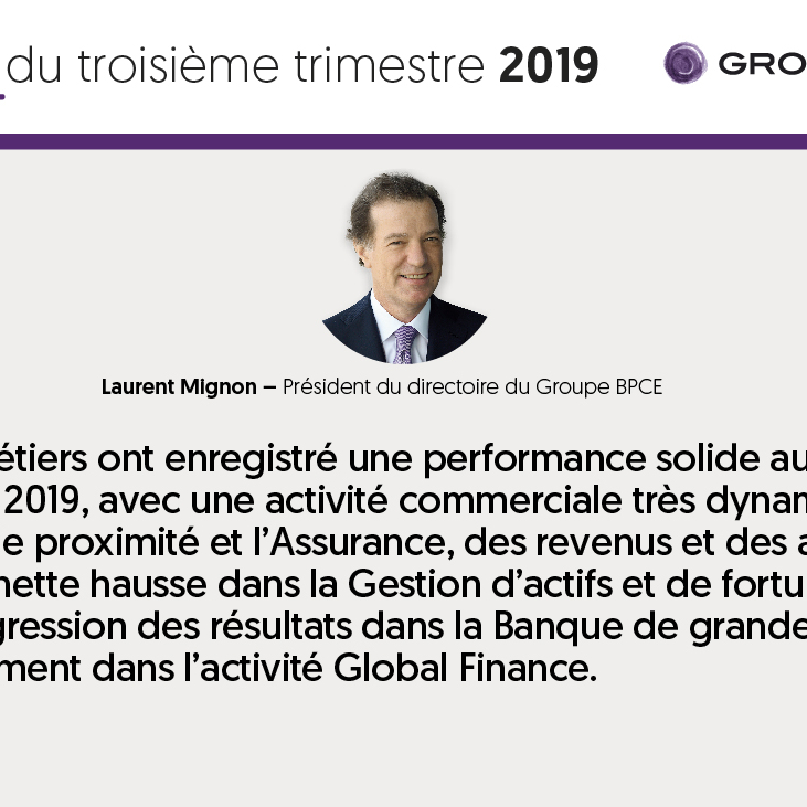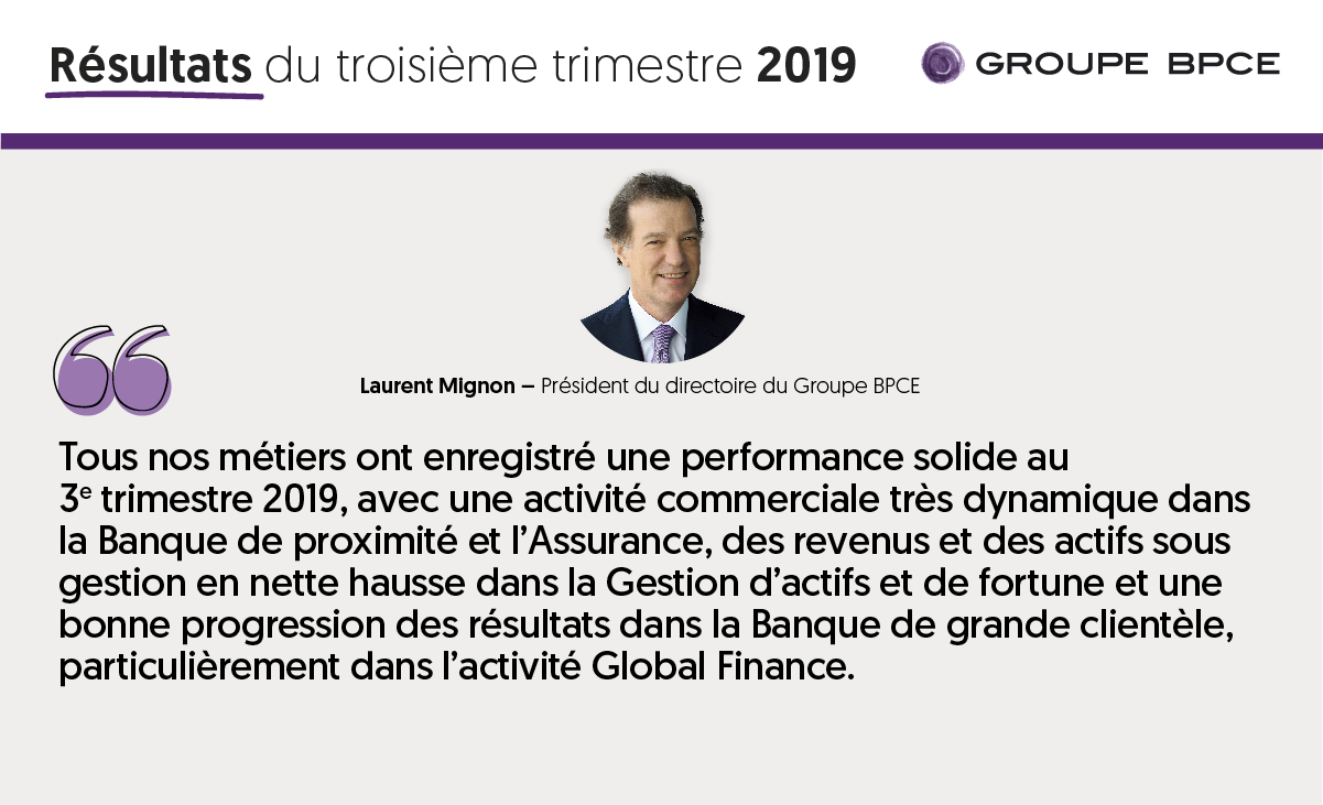 Citation de Laurent Mignon, Président du directoire du Groupe BPCE, sur les performances du troisième trimestre 2019 du groupe.