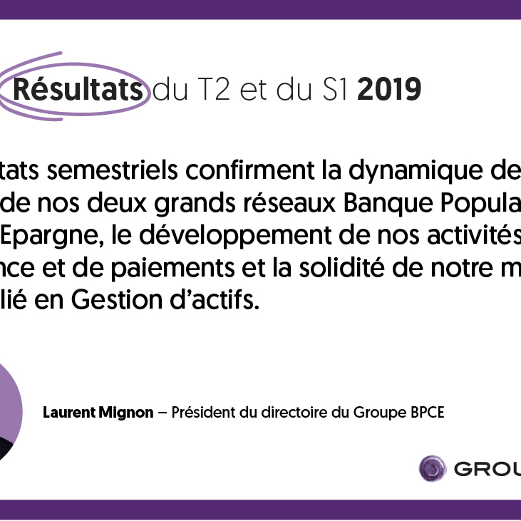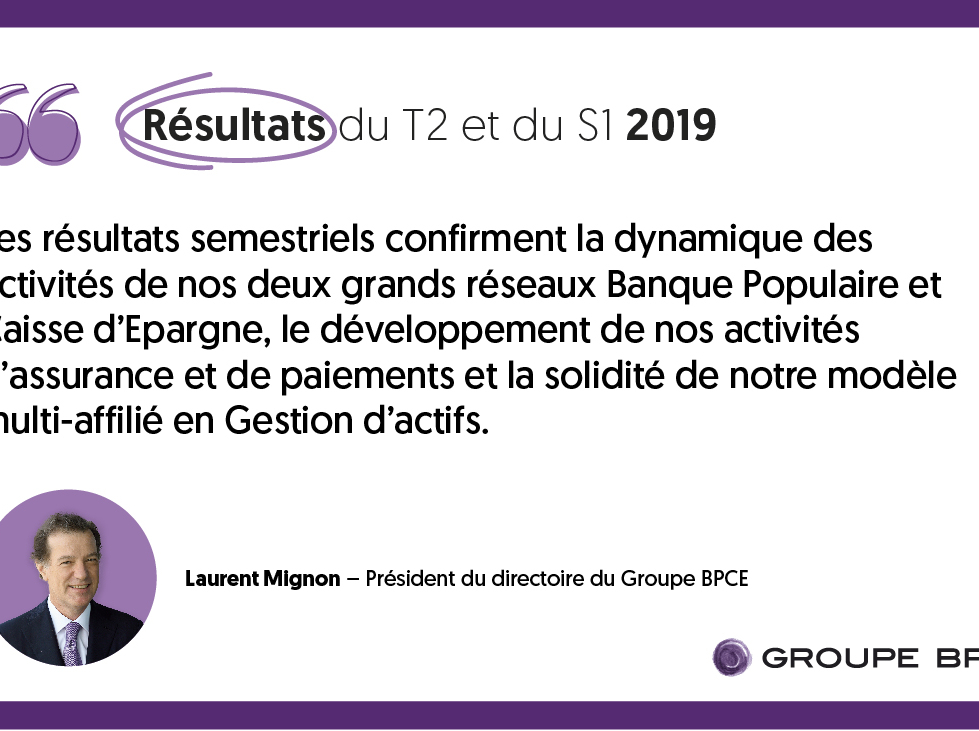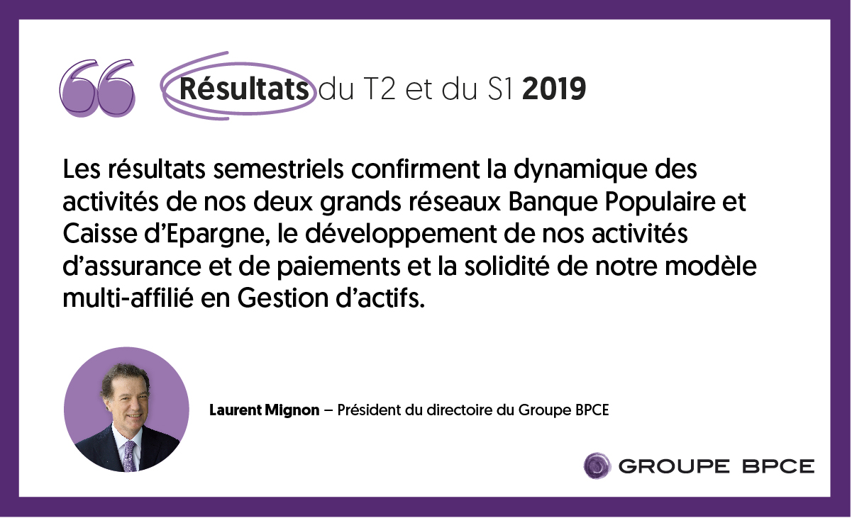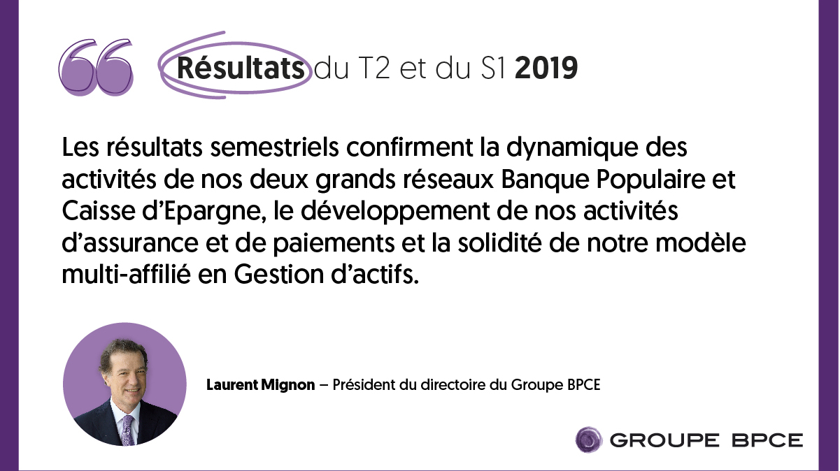Citation de Laurent Mignon sur la dynamique des réseaux et des activités du Groupe BPCE pour les résultats du T2 et S1 2019.