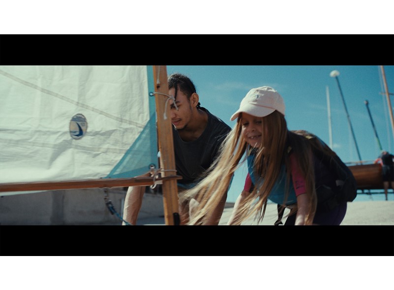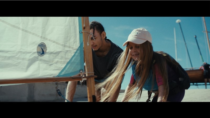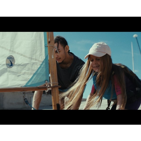 Un homme et une jeune fille préparent ensemble un petit voilier sur un quai sous un ciel bleu, illustrant l'aspect collectif et intergénérationnel de la réussite.