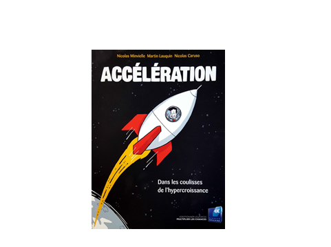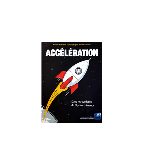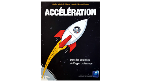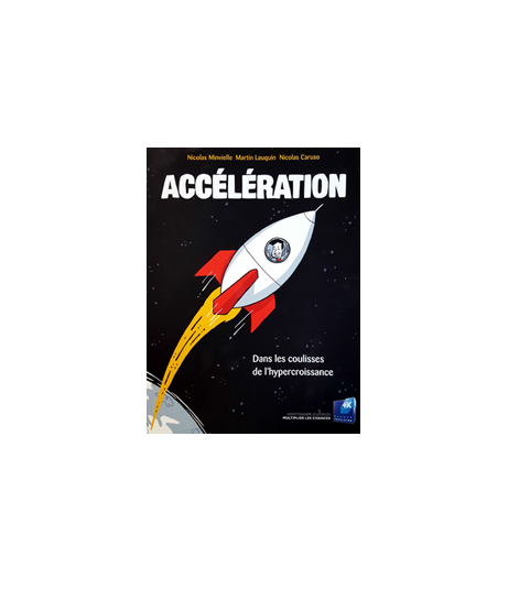 Couverture du livre « Accélération : dans les coulisses de l’hypercroissance » de Nicolas Minvielle, Martin Lauquin et Nicolas Caruso, illustrant une fusée sur fond spatial.