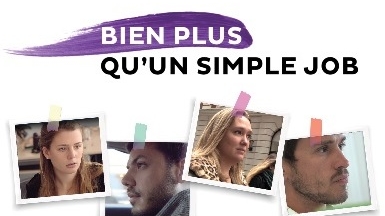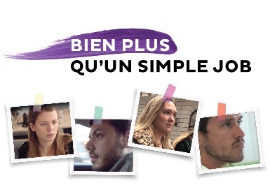 Visuel de la campagne Marque Employeur Natixis, présentant quatre portraits de jeunes collaborateurs sous le slogan « Bien plus qu’un simple job ».