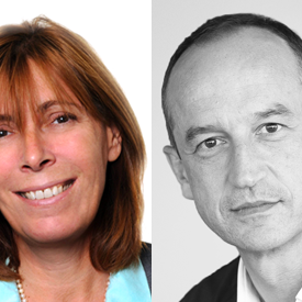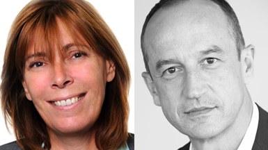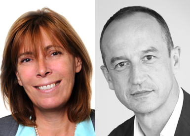 Portraits d'Elisabeth de Gaulle, nouvelle directrice de la communication du Groupe BPCE, et Benoît Gausseron, directeur de la communication de Natixis.