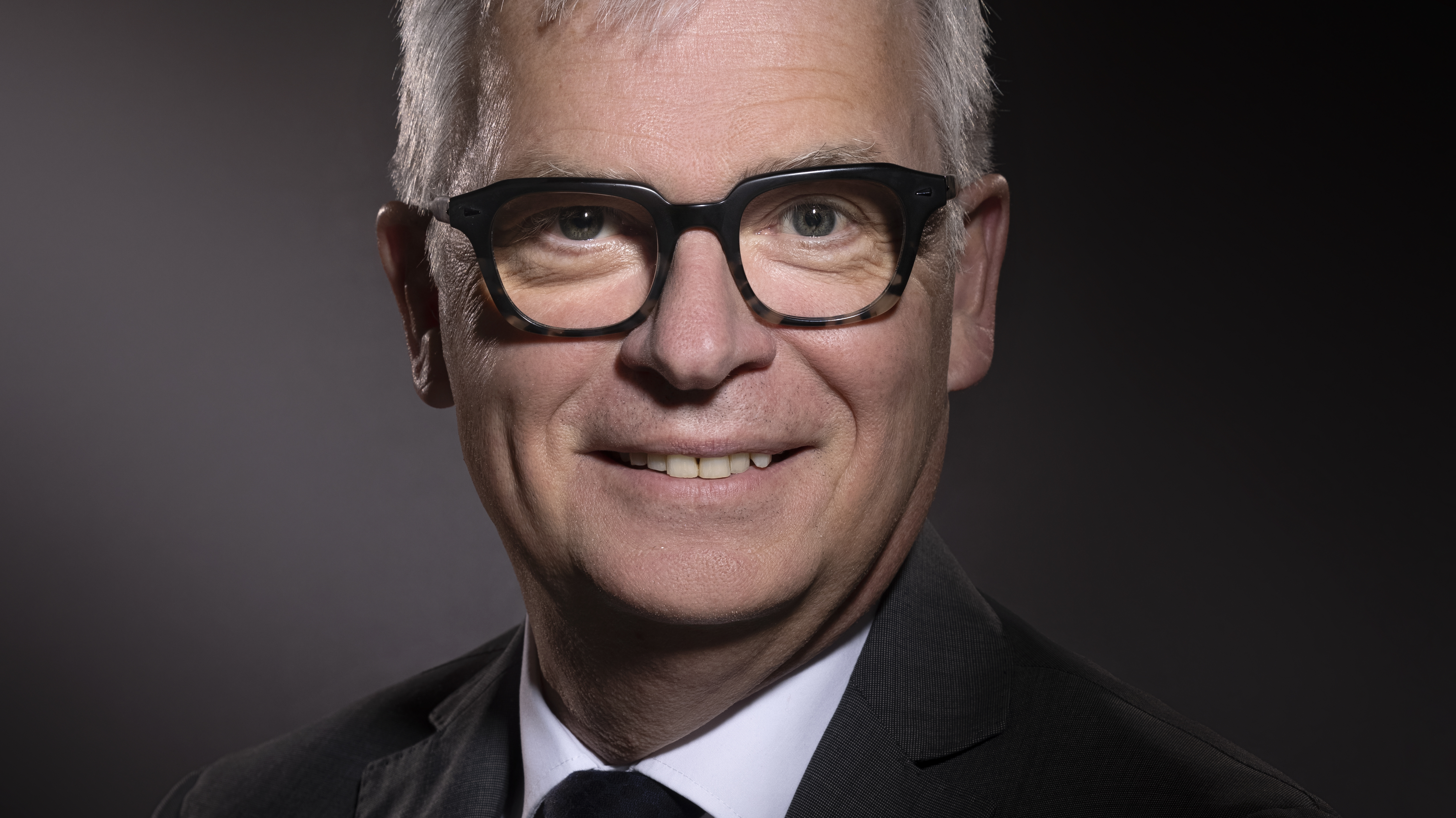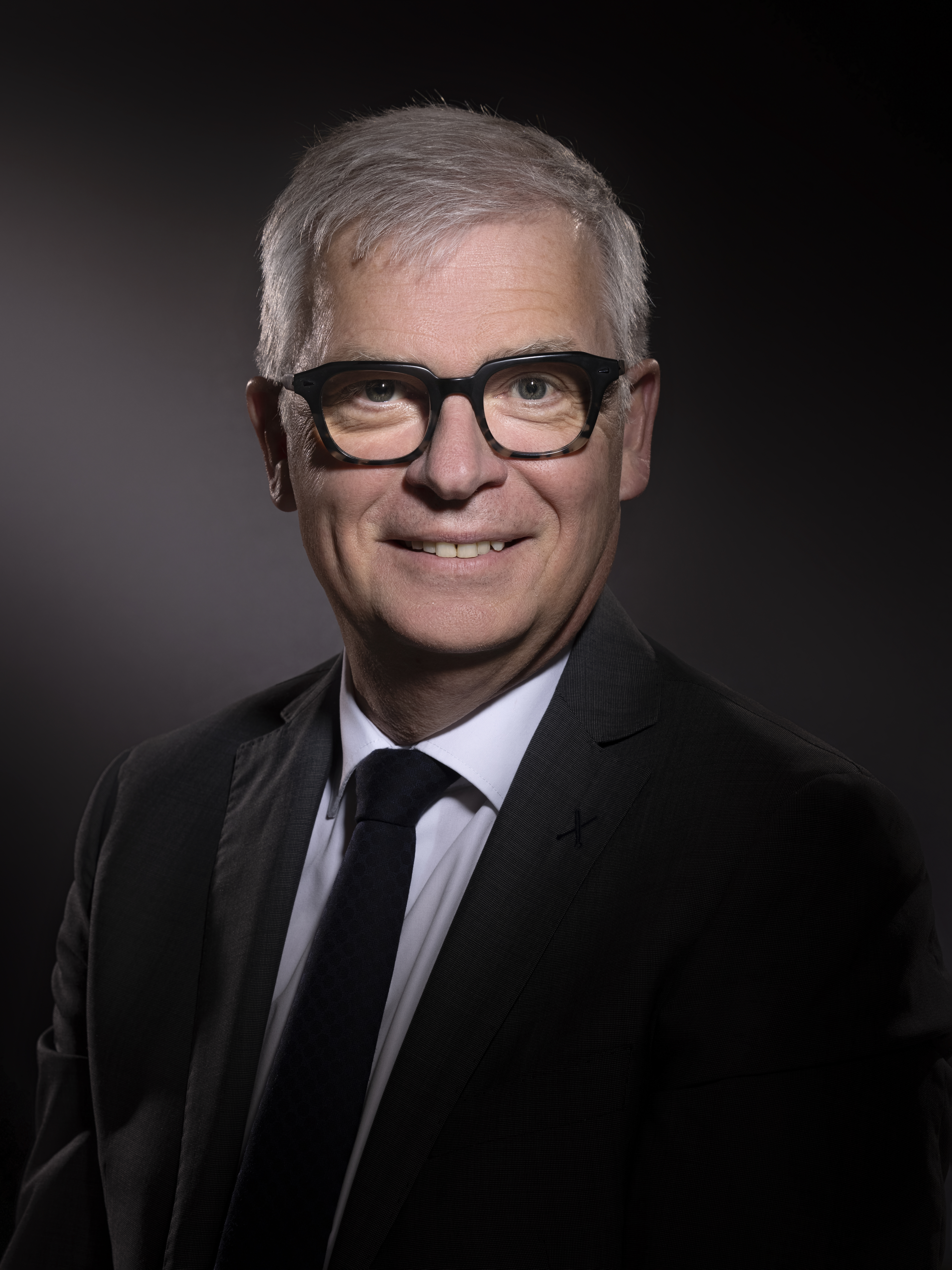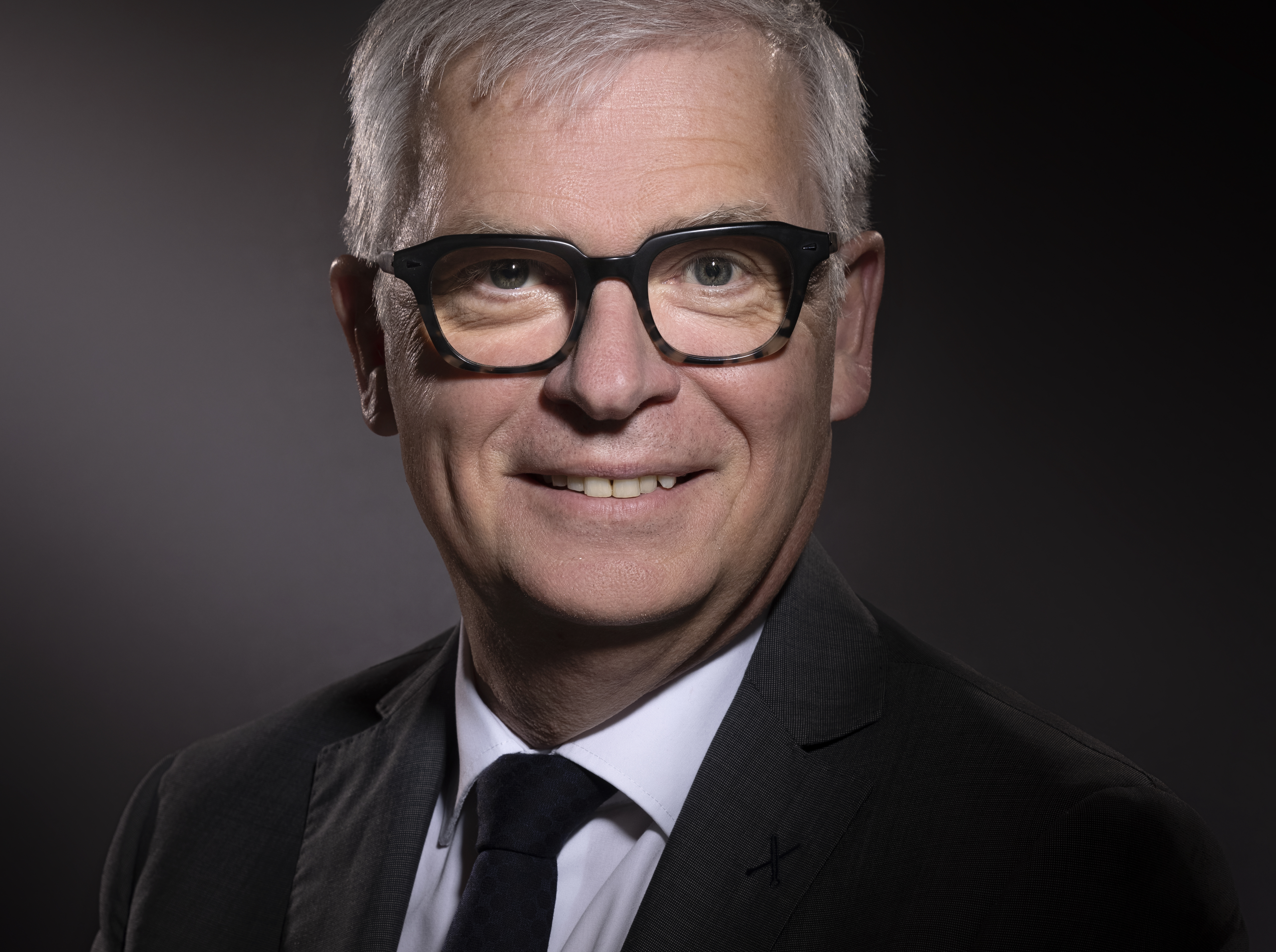 Portrait professionnel de Dominique Garnier, nouvel administrateur de Natixis, pris sur fond sombre.