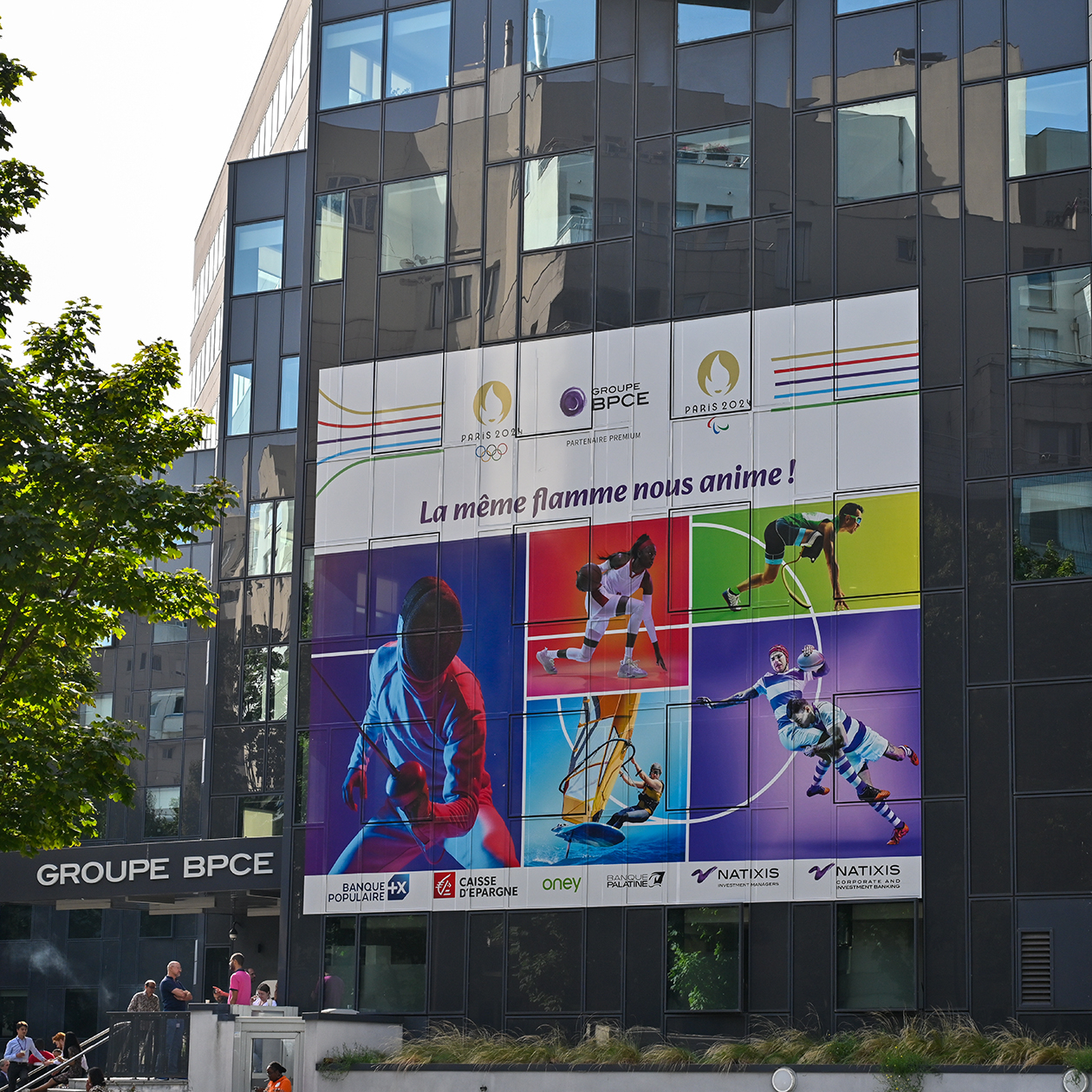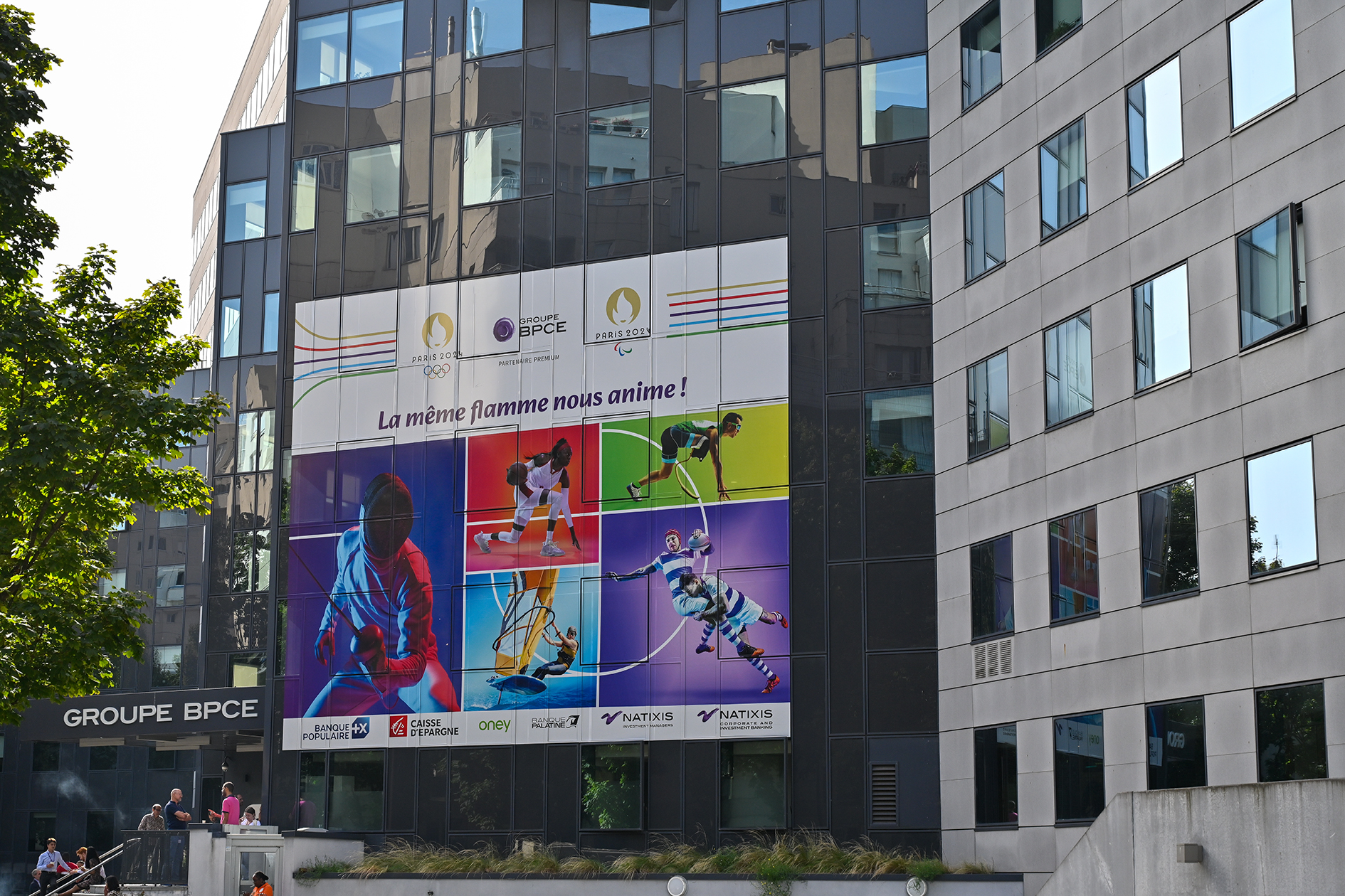 Immeuble francilien Groupe BPCE affichage Partenaire Premium JOP 2024 (1)