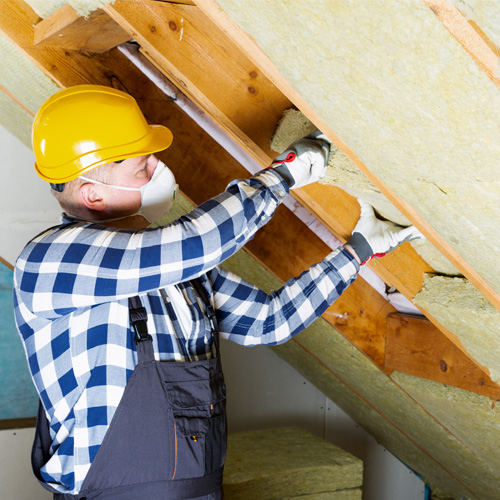 Travaux d’isolation énergétique réalisés dans des combles, avec pose de panneaux isolants pour améliorer la performance thermique d'une habitation.