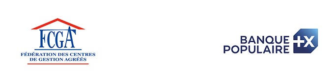 Logos de la Fédération des Centres de Gestion Agréés (FCGA) et de la Banque Populaire, illustrant un partenariat institutionnel.