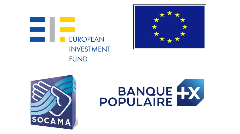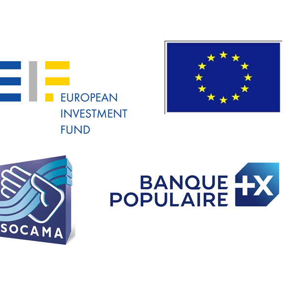 Logos du Fonds européen d’investissement, de l'Union européenne, de la Fédération Nationale des Socama et de Banque Populaire, partenaires d’un accord de financement pour les TPE françaises.