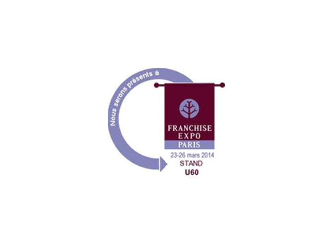 Logo de la Franchise Expo Paris 2014, indiquant la présence sur le stand U60 du 23 au 26 mars 2014.