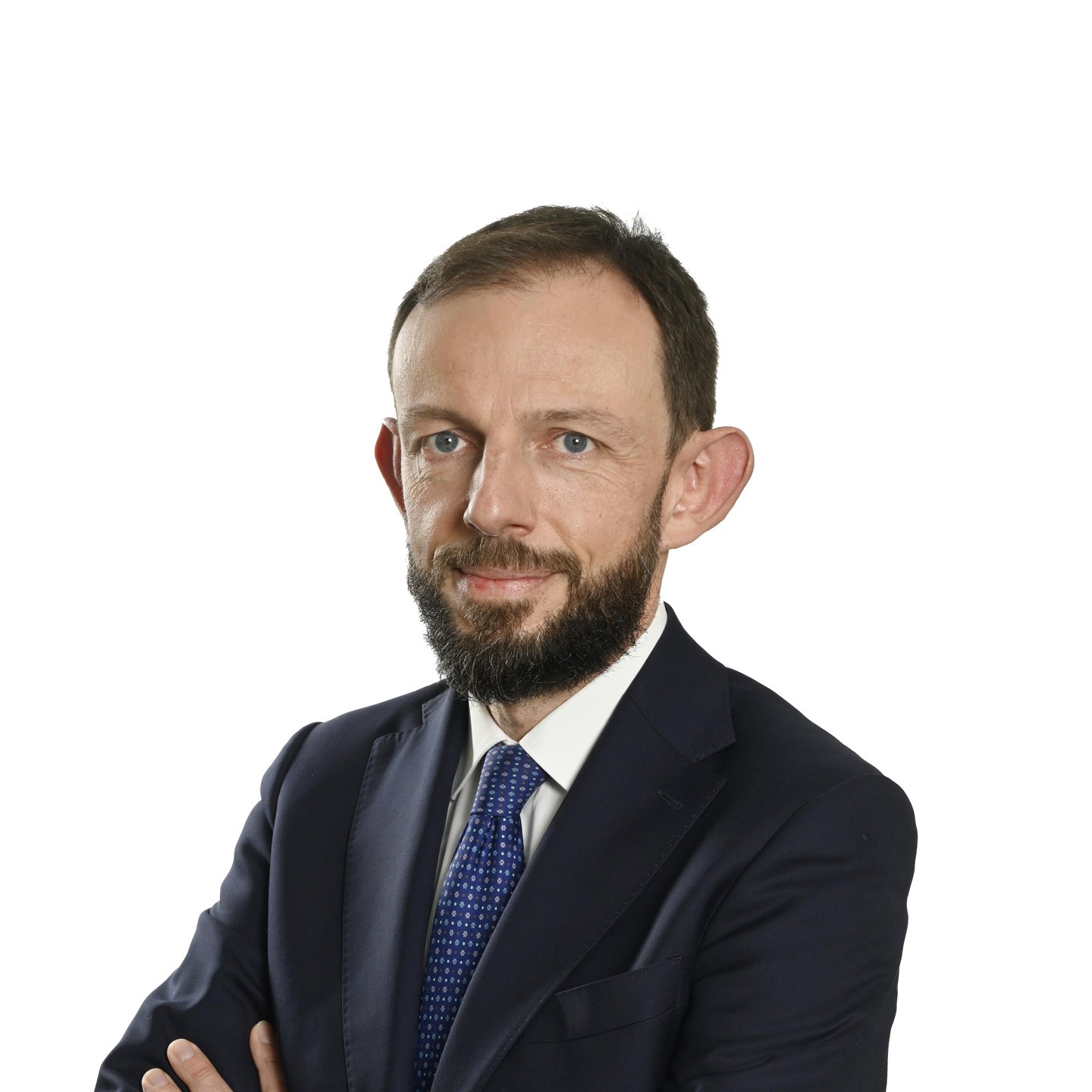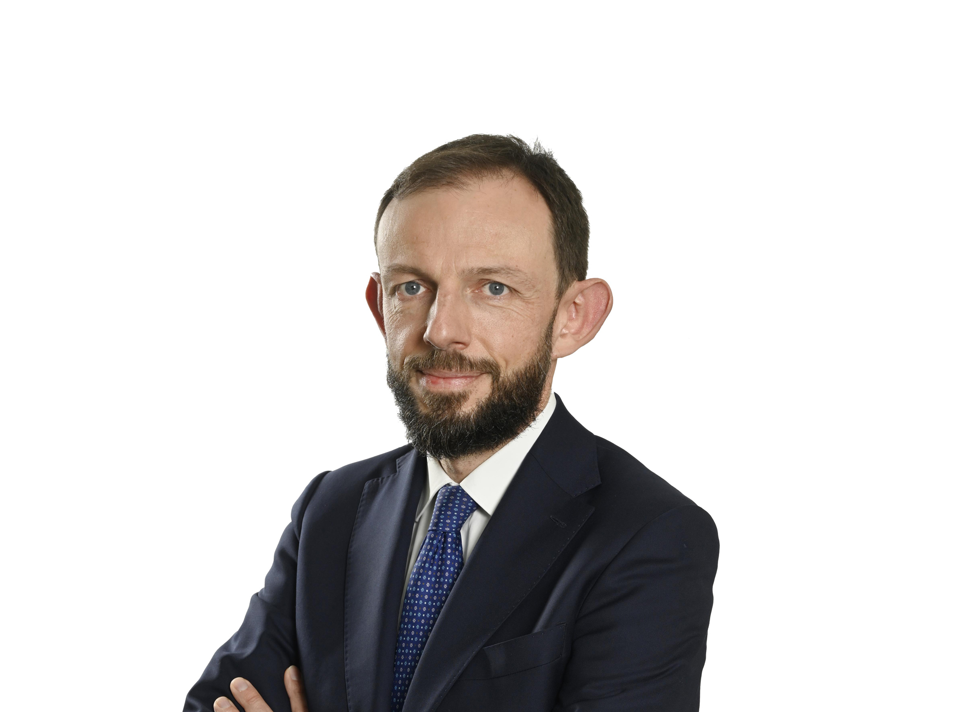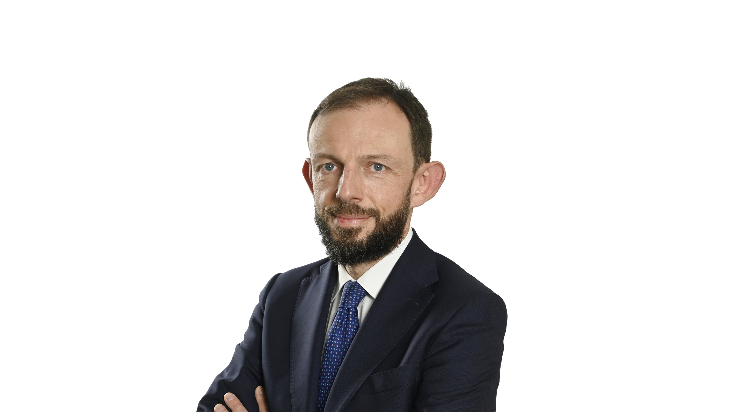 Portrait professionnel de Franck Leroy, nommé directeur des risques de Natixis, sur fond blanc.