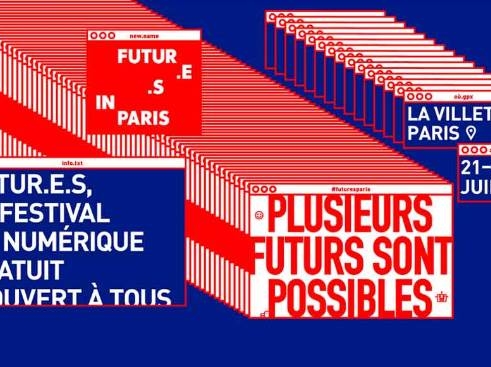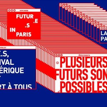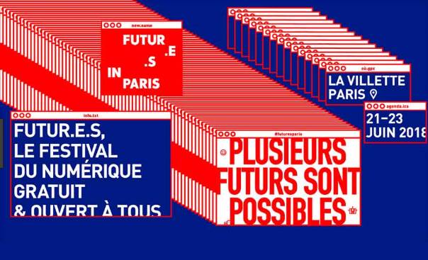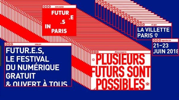 Visuel officiel du festival Futur.e.s 2018 à Paris, mettant en avant le slogan « Plusieurs futurs sont possibles » et les informations principales de l’événement.