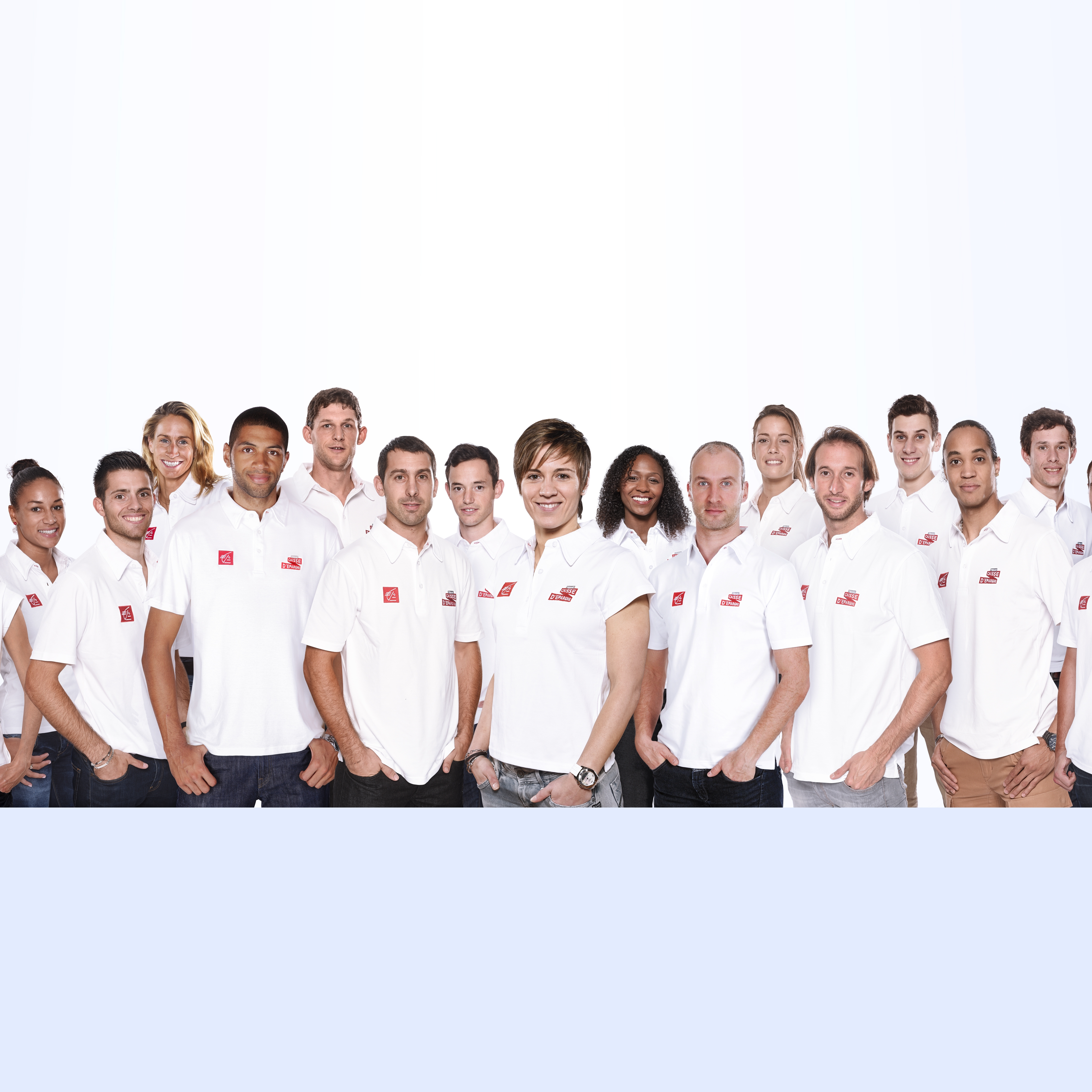Photo de groupe des sportifs du Team Caisse d'Epargne soutenus lors des Jeux Olympiques de Rio 2016.