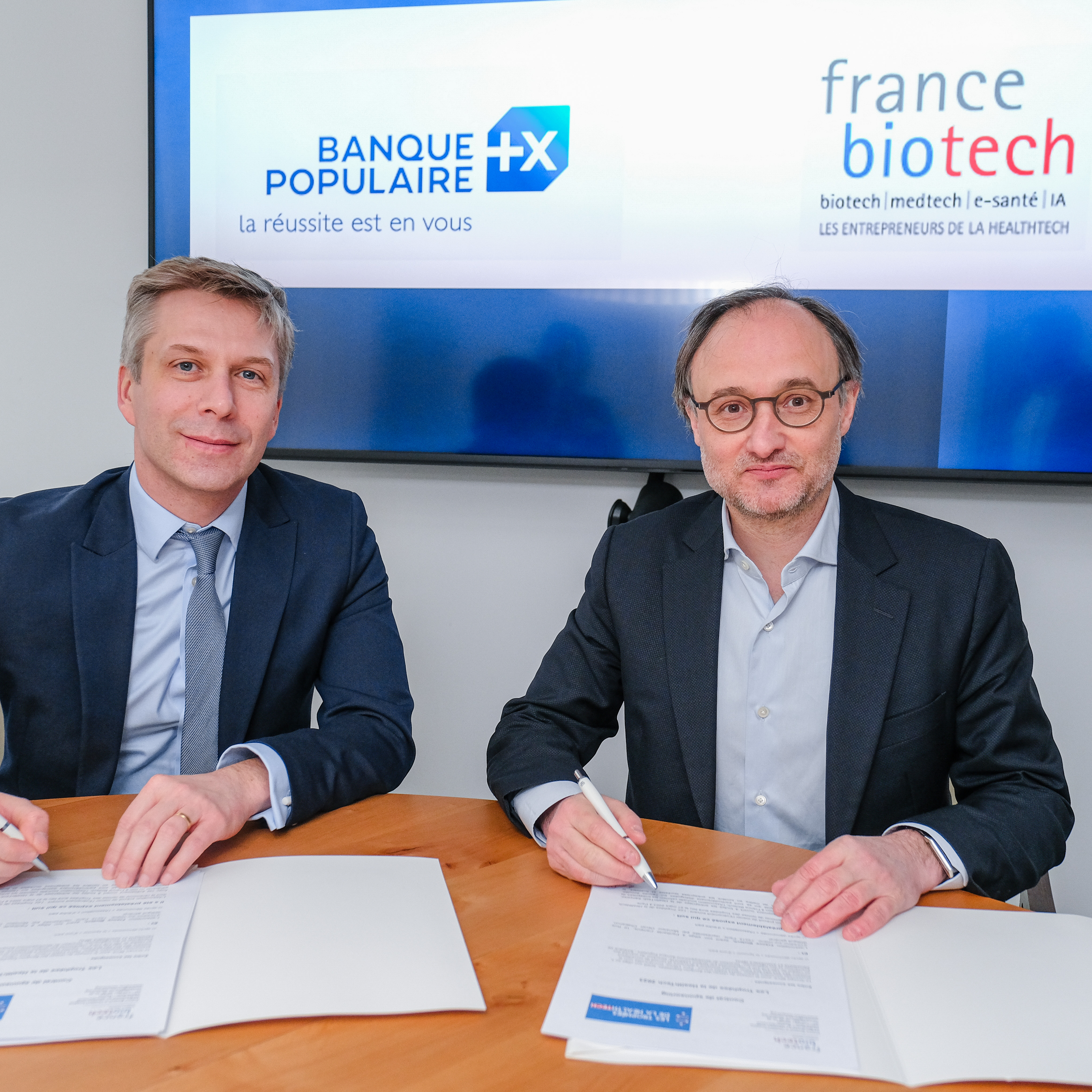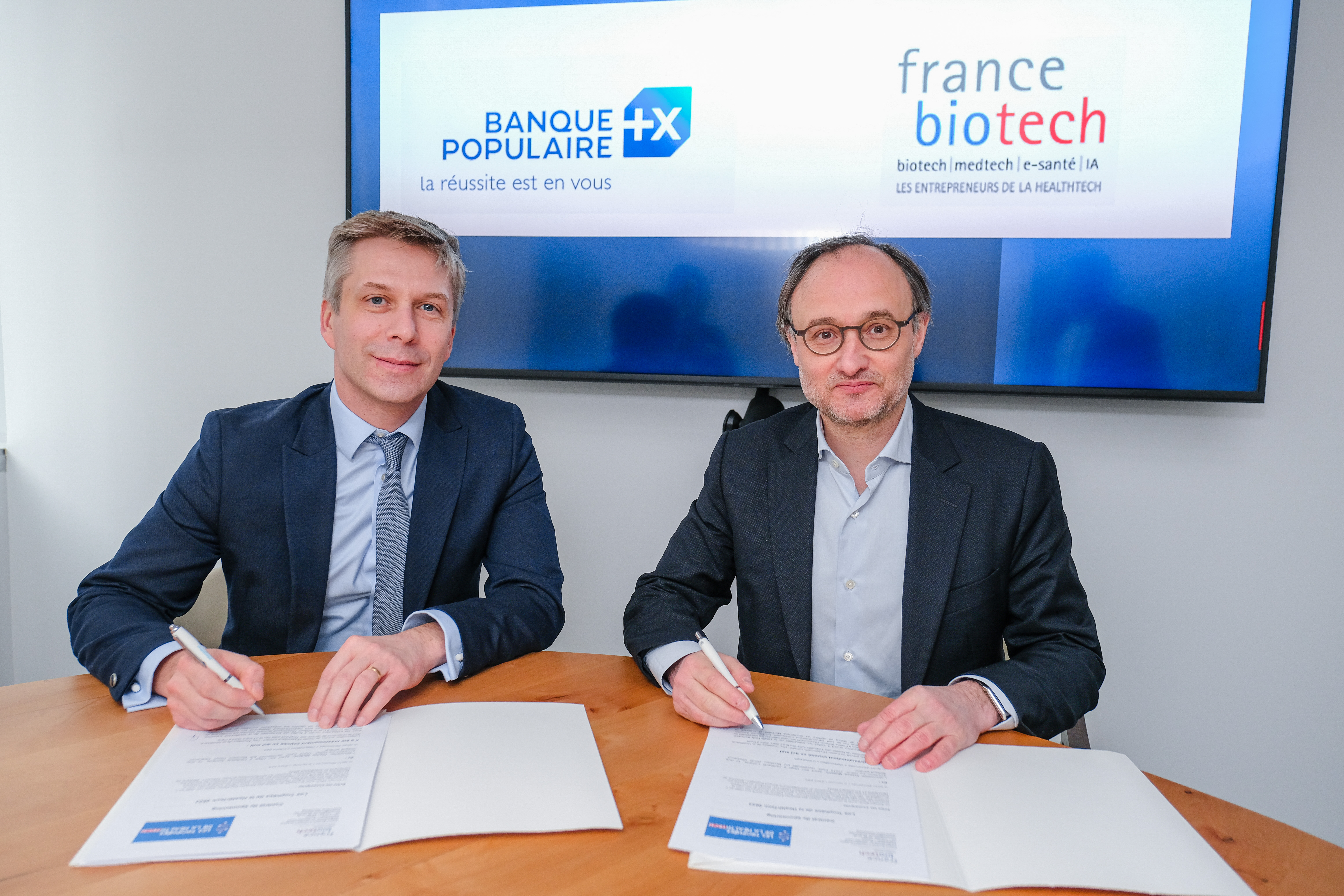 Signature du partenariat entre Banque Populaire et France Biotech pour soutenir le développement des entreprises innovantes dans le secteur de la HealthTech.