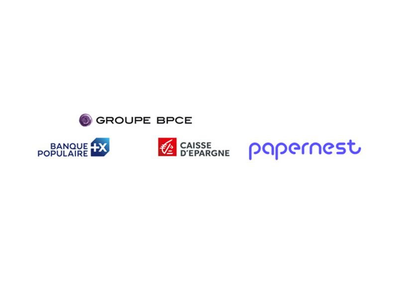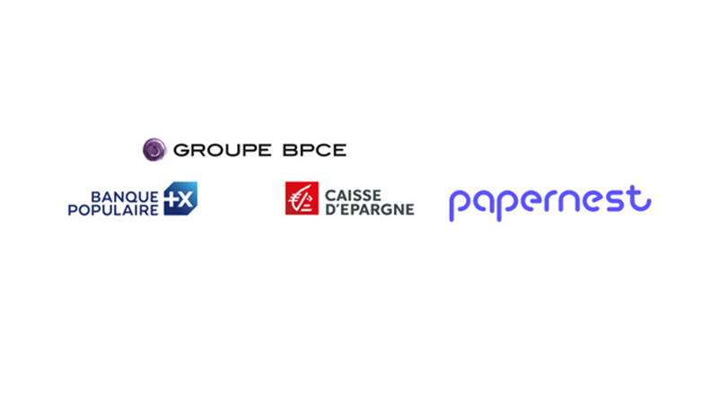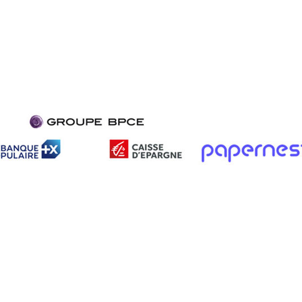 Logos du Groupe BPCE, Banque Populaire, Caisse d'Epargne et papernest illustrant leur partenariat pour l’optimisation des dépenses des professionnels.