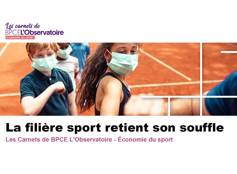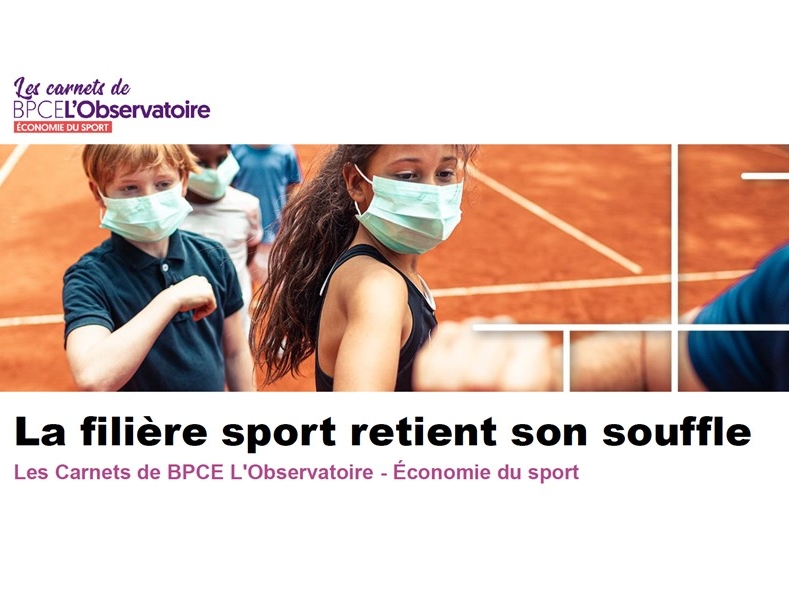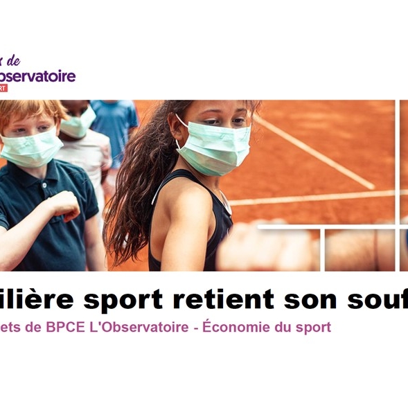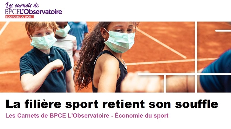 Des enfants portant des masques chirurgicaux se tiennent sur un terrain de sport, illustrant l'impact sanitaire sur l'économie du sport selon l'étude BPCE L'Observatoire.