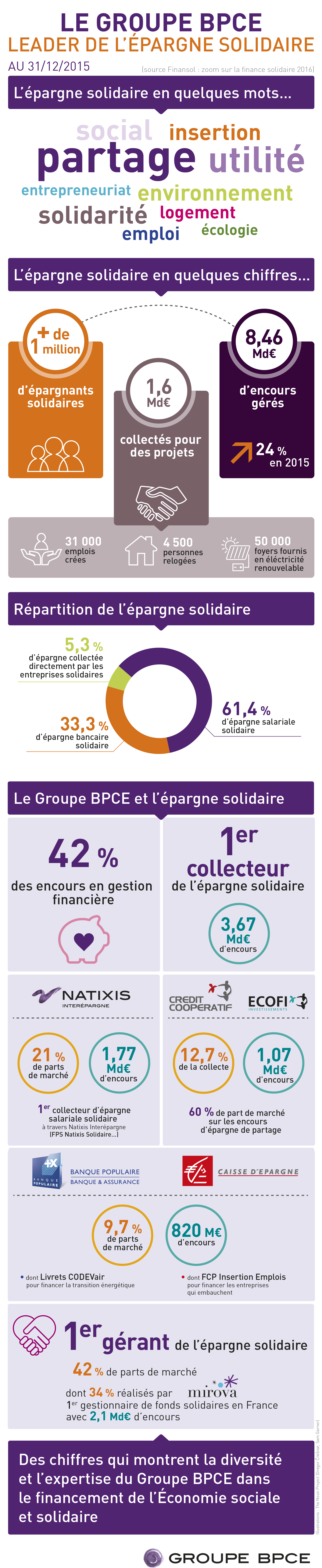 Infographie sur le Groupe BPCE, leader de l'épargne solidaire