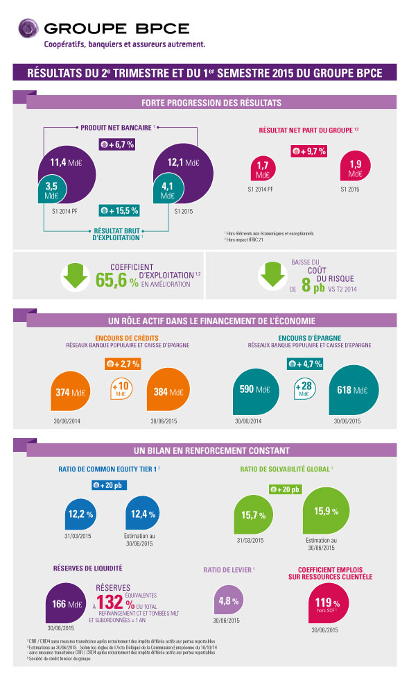 Infographie - Résultats du 2e trimestre et 1er semestre 2015 du Groupe BPCE