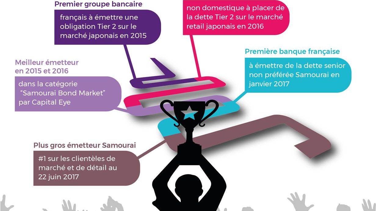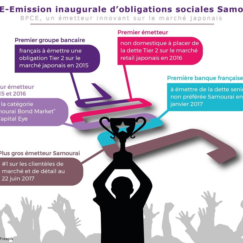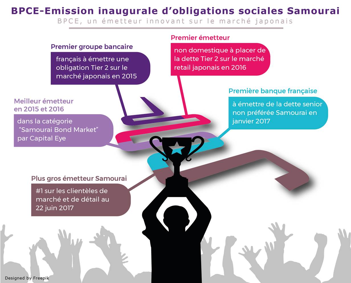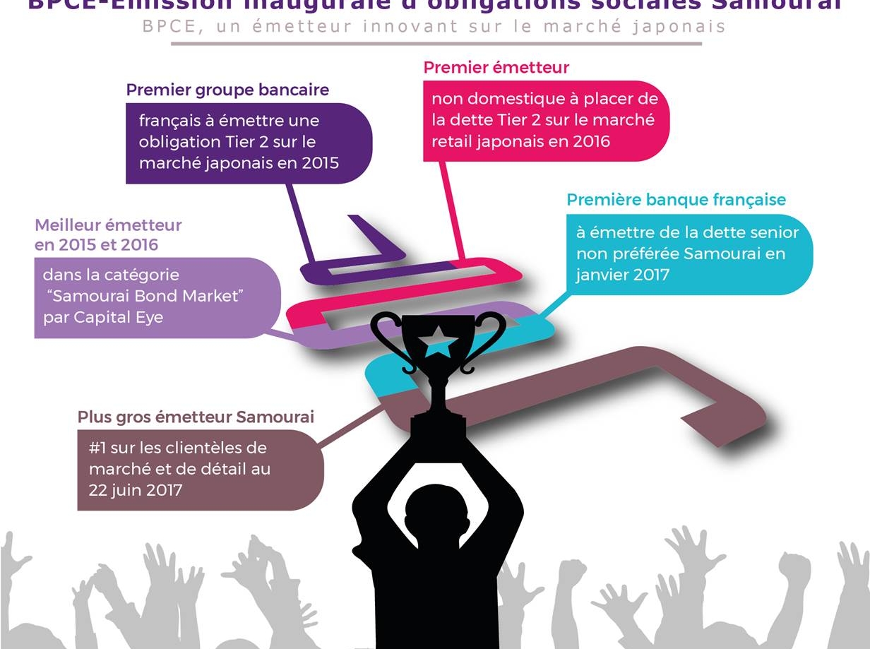 Le Groupe BPCE est, au 22 juin 2017, le plus grand emetteur sur le marché Samouraï (le Samouraï étant une émission libellée en yens sur le marché obligataire japonais réalisée par des émetteurs non japonais)