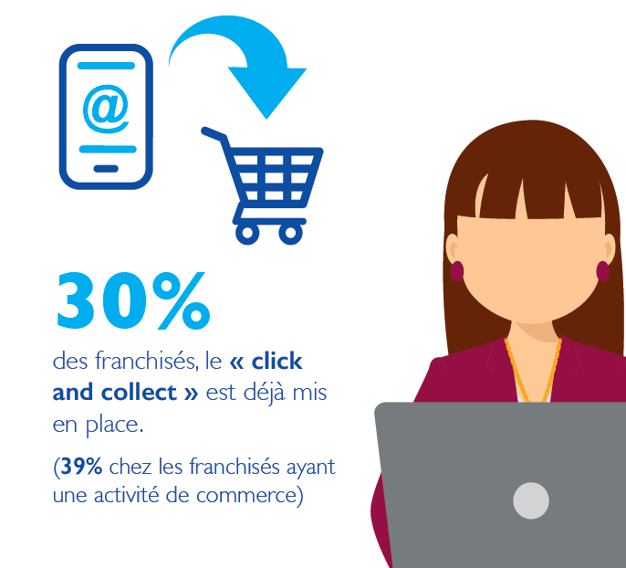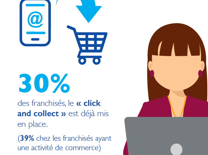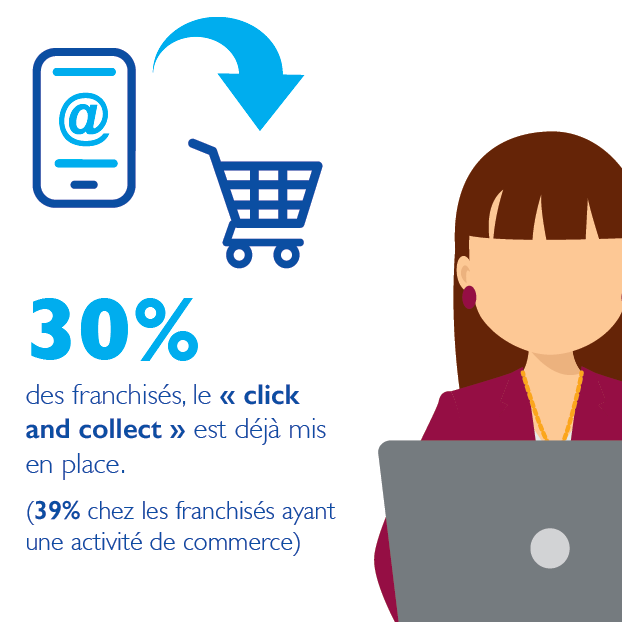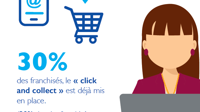 Infographie sur l'adoption du click and collect en franchise, indiquant que 30% des franchisés ont déjà mis ce service en place.