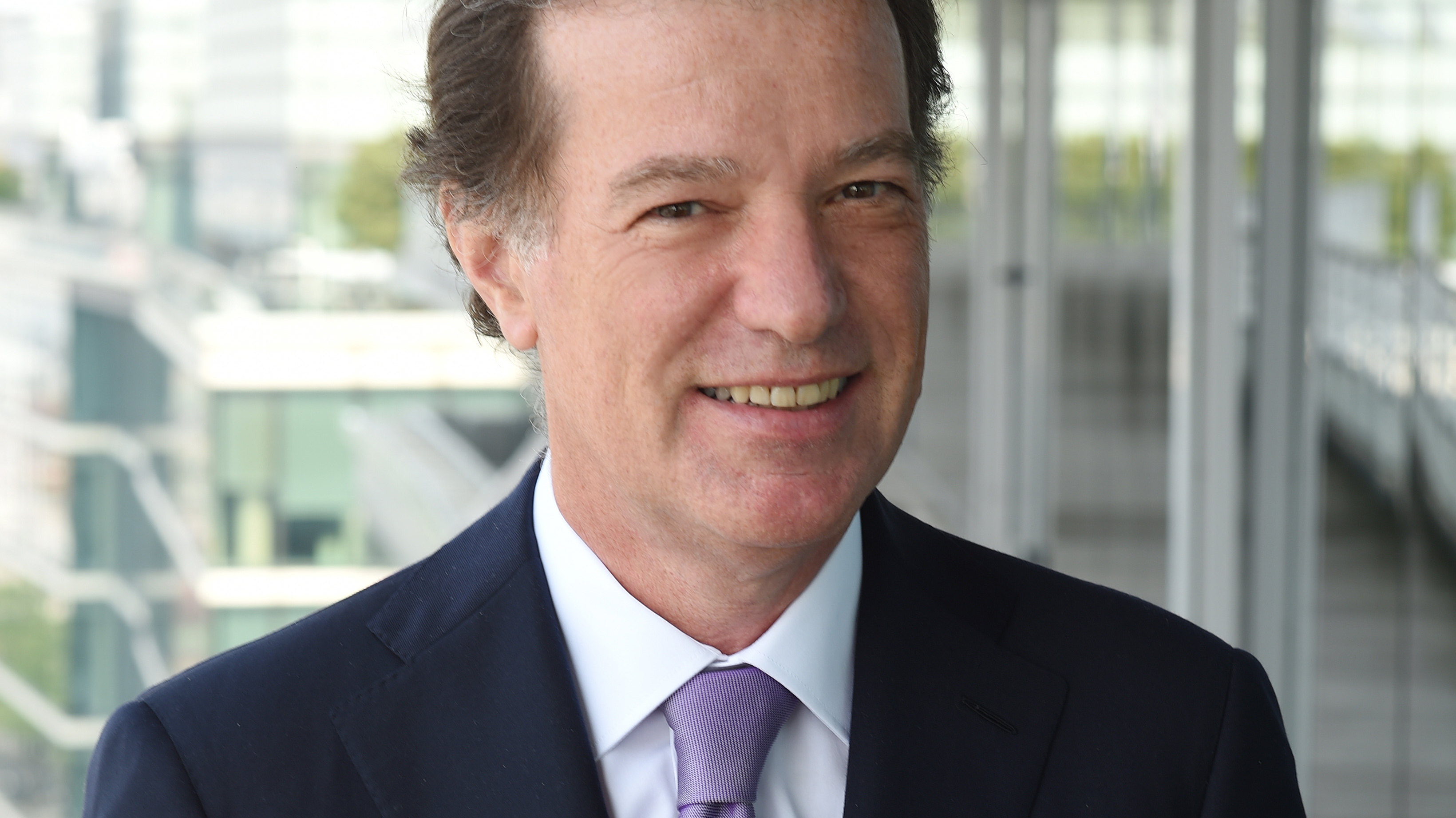 Portrait de Laurent Mignon, nommé Président du directoire du Groupe BPCE en juin 2018, photographié en extérieur.