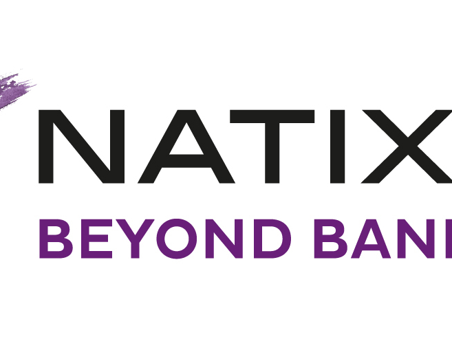 Logo de Natixis avec le slogan Beyond Banking, illustrant l'identité de marque du groupe financier international.
