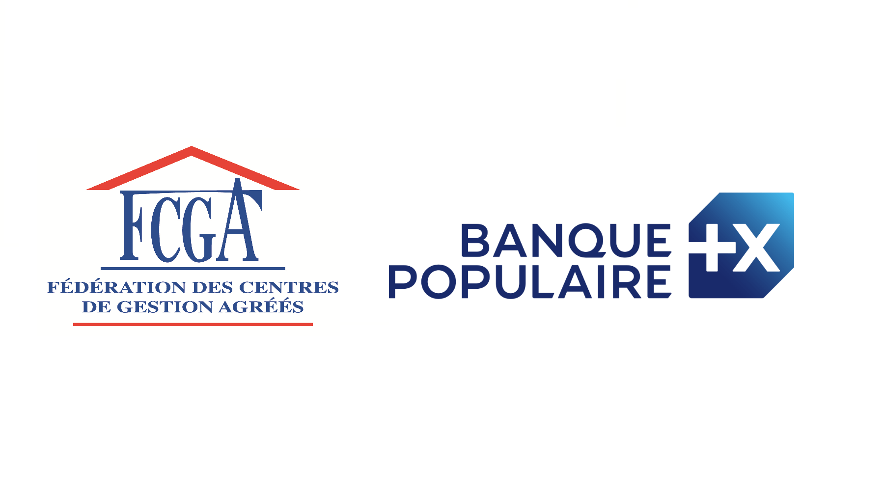 Logos de la Fédération des Centres de Gestion Agréés (FCGA) et de la Banque Populaire, partenaires de L'Observatoire de la Petite Entreprise.