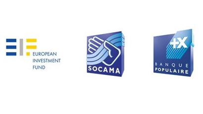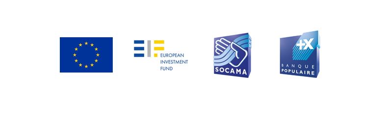 Logos de l'Union européenne, du Fonds Européen d'Investissement (FEI), de la Fédération Nationale des Socama et de Banque Populaire liés à un accord de financement COSME - FEIS.