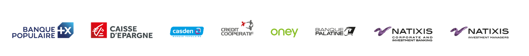 Logos des principales marques du Groupe BPCE incluant Banque Populaire, Caisse d'Epargne, Casden, Crédit Coopératif, Oney, Banque Palatine, Natixis Corporate and Investment Banking et Natixis Investment Managers.