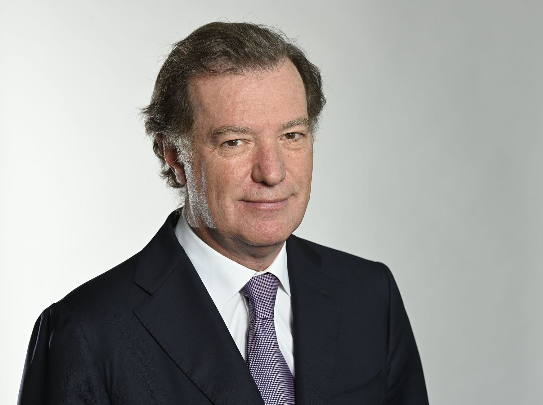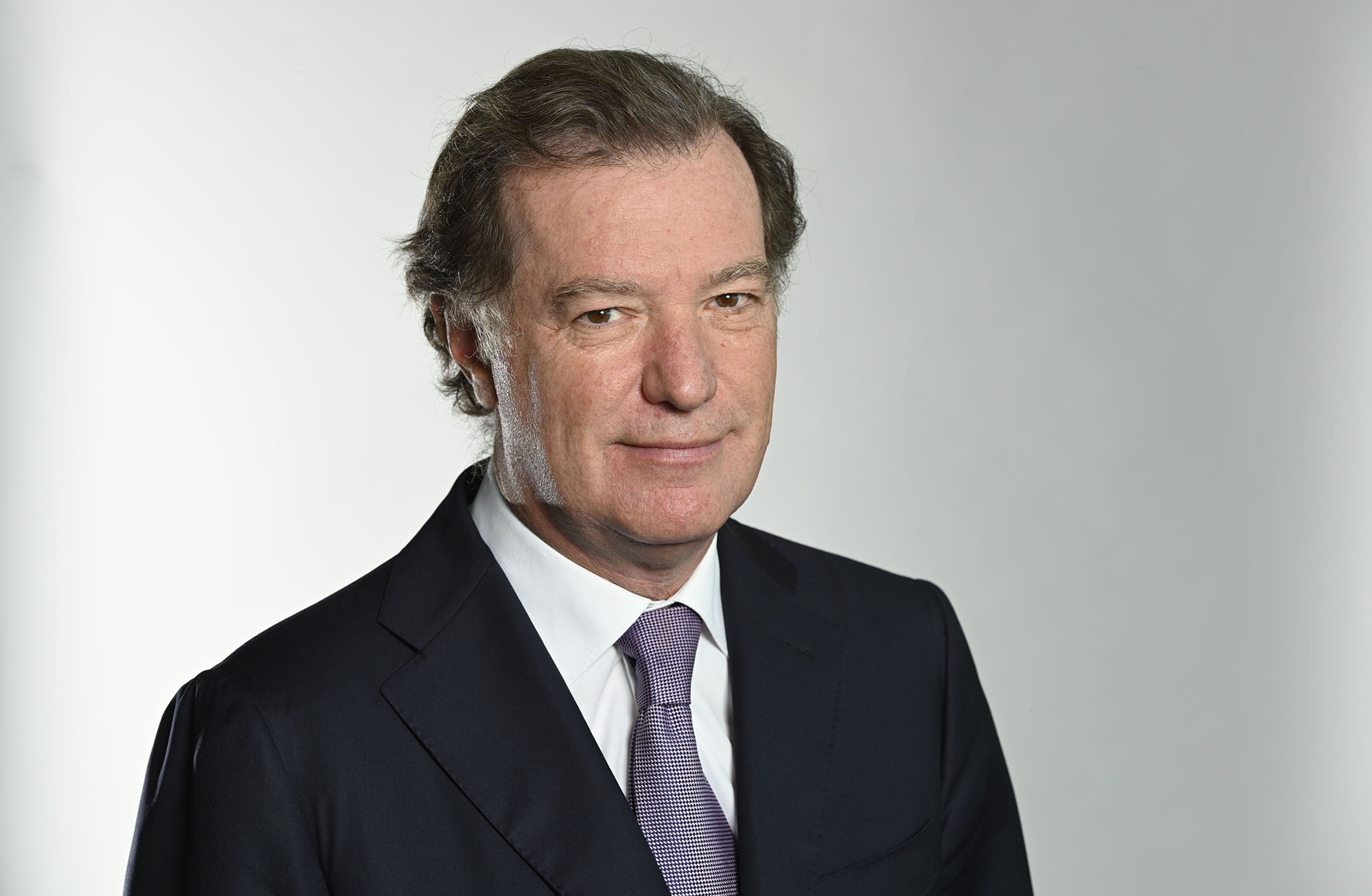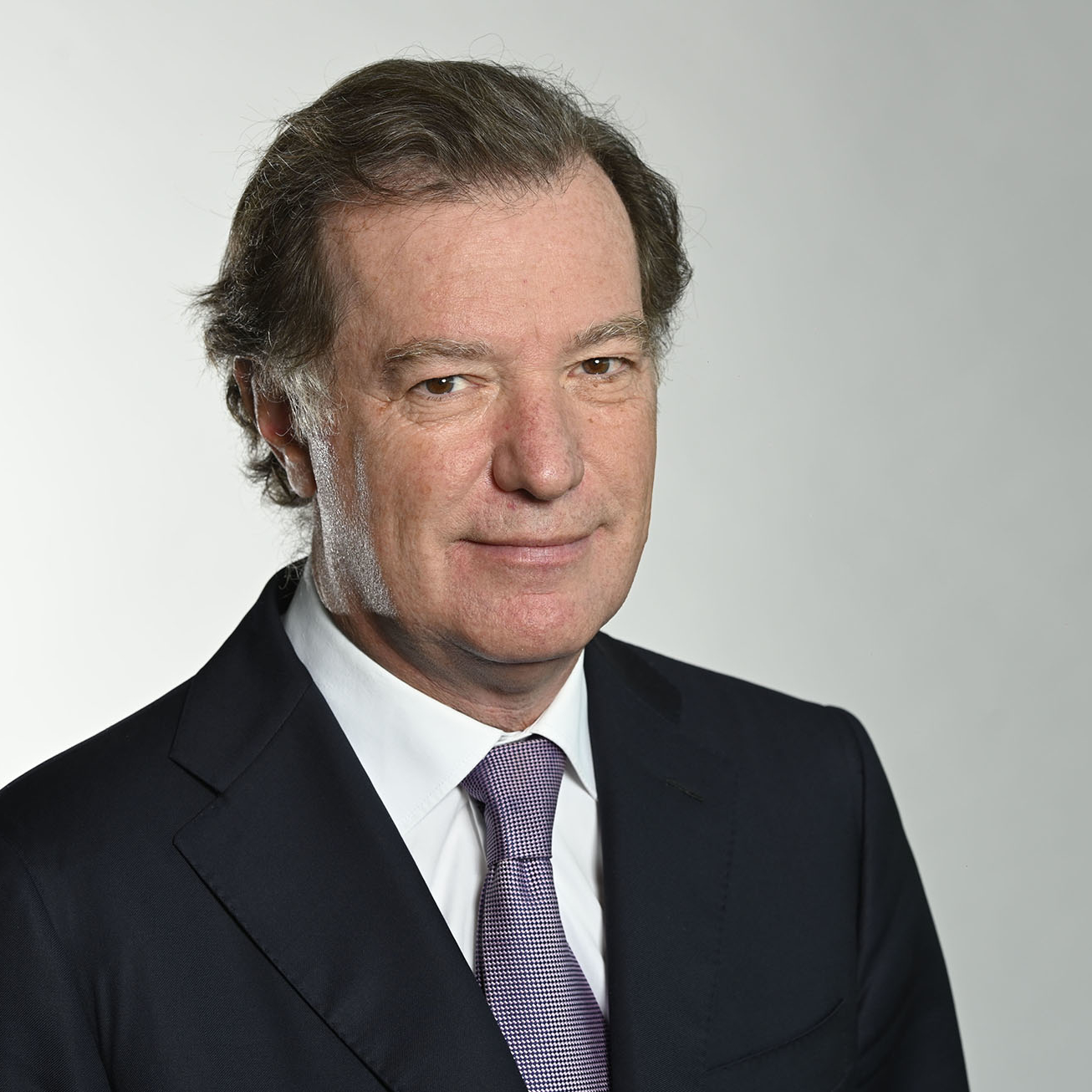 Portrait professionnel d'un homme d'âge mûr en costume sombre et cravate, sur fond neutre, destiné à une communication institutionnelle ou économique.