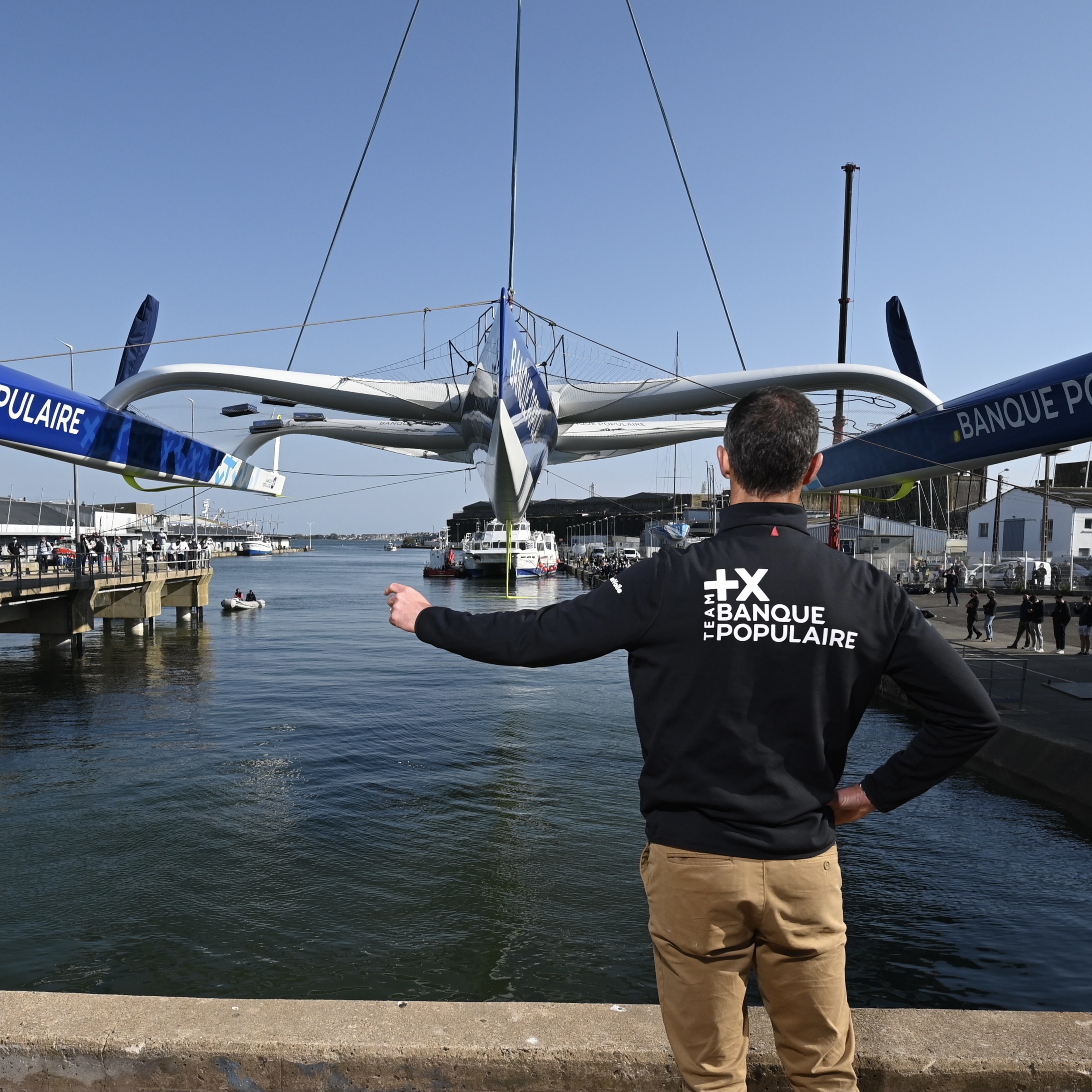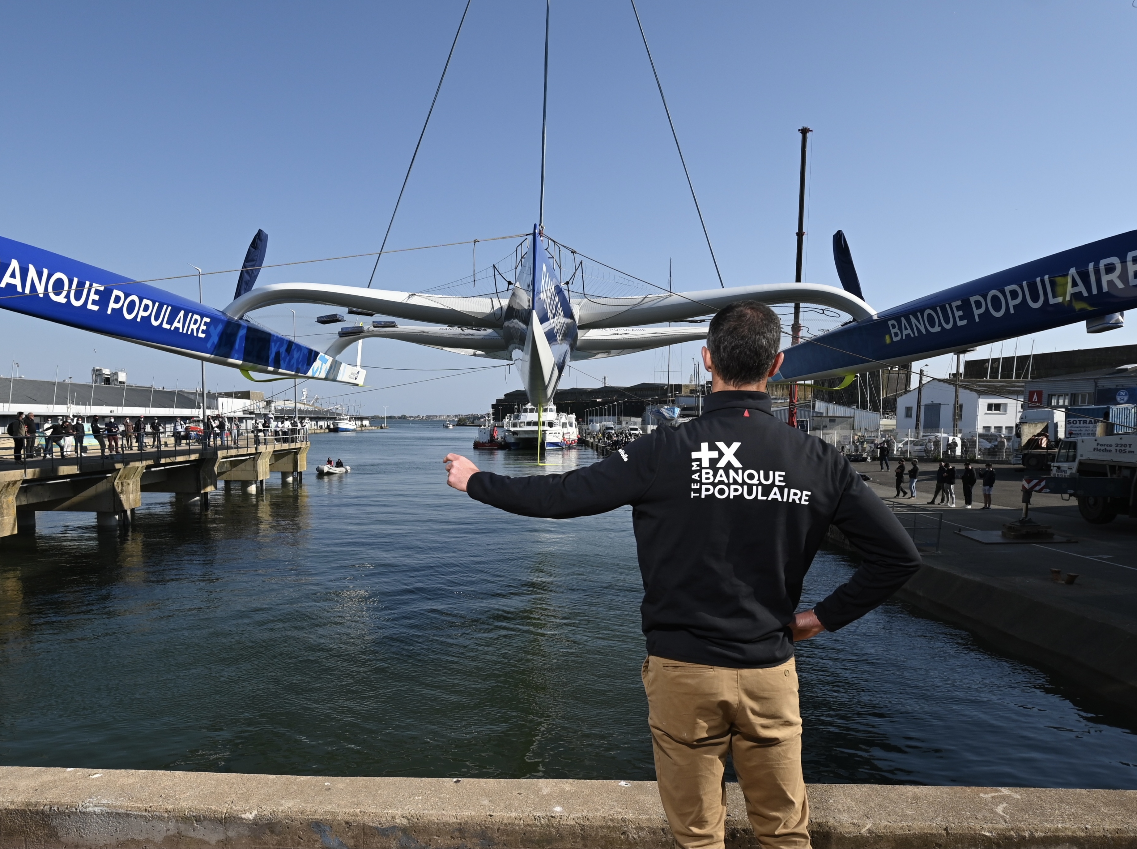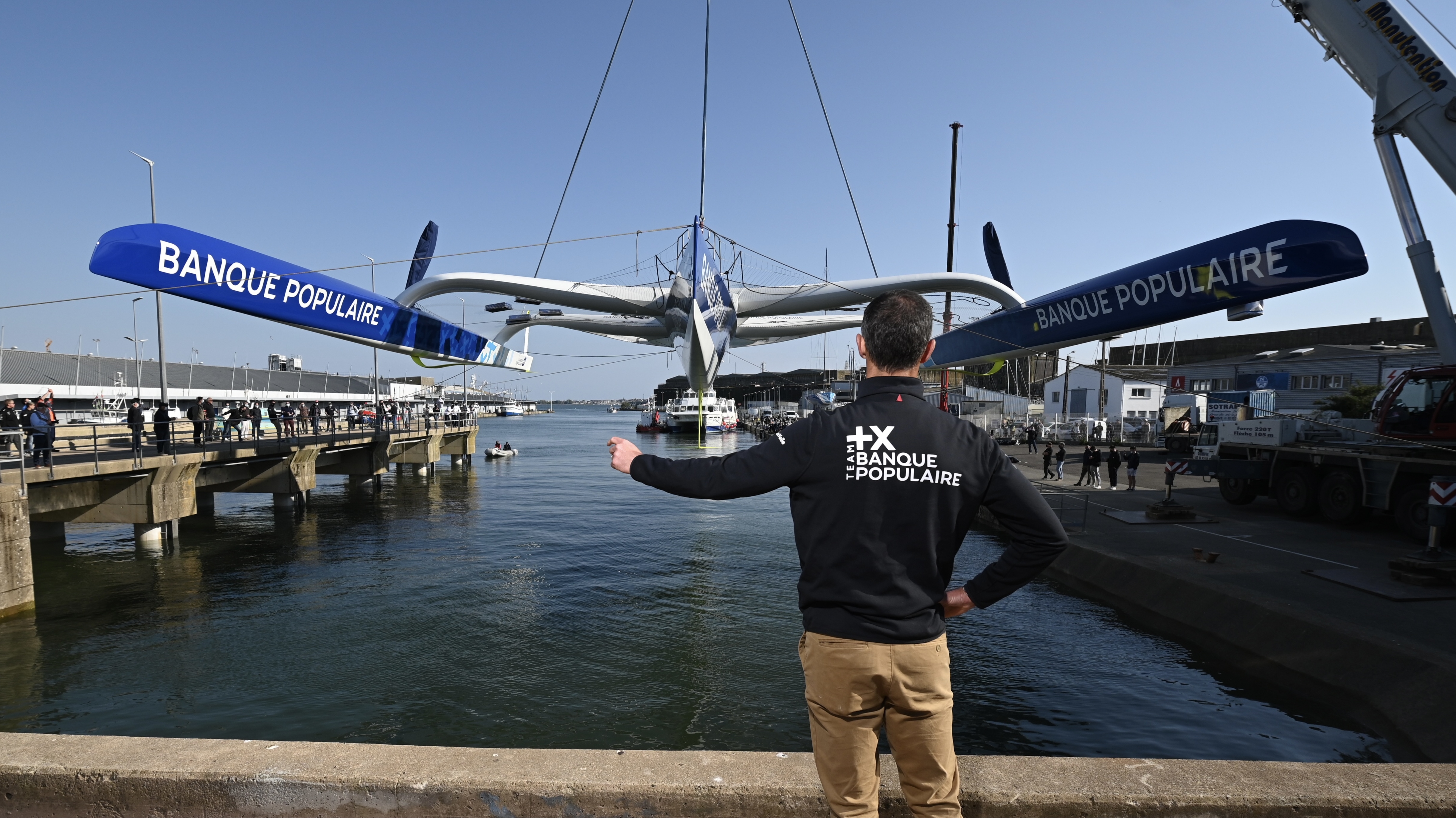 Mise à l'eau du Maxi Banque Populaire XI à Lorient