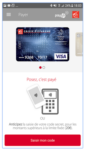 Paiement sans contact Paylib sur l'appli Caisse d'Epargne