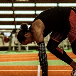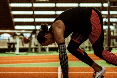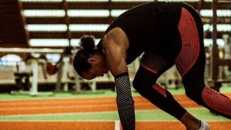 Pascal Martinot-Lagarde sur la piste d’athlétisme lors du tournage de la série « Partageons les rêves de l’Équipe de France Olympique ».