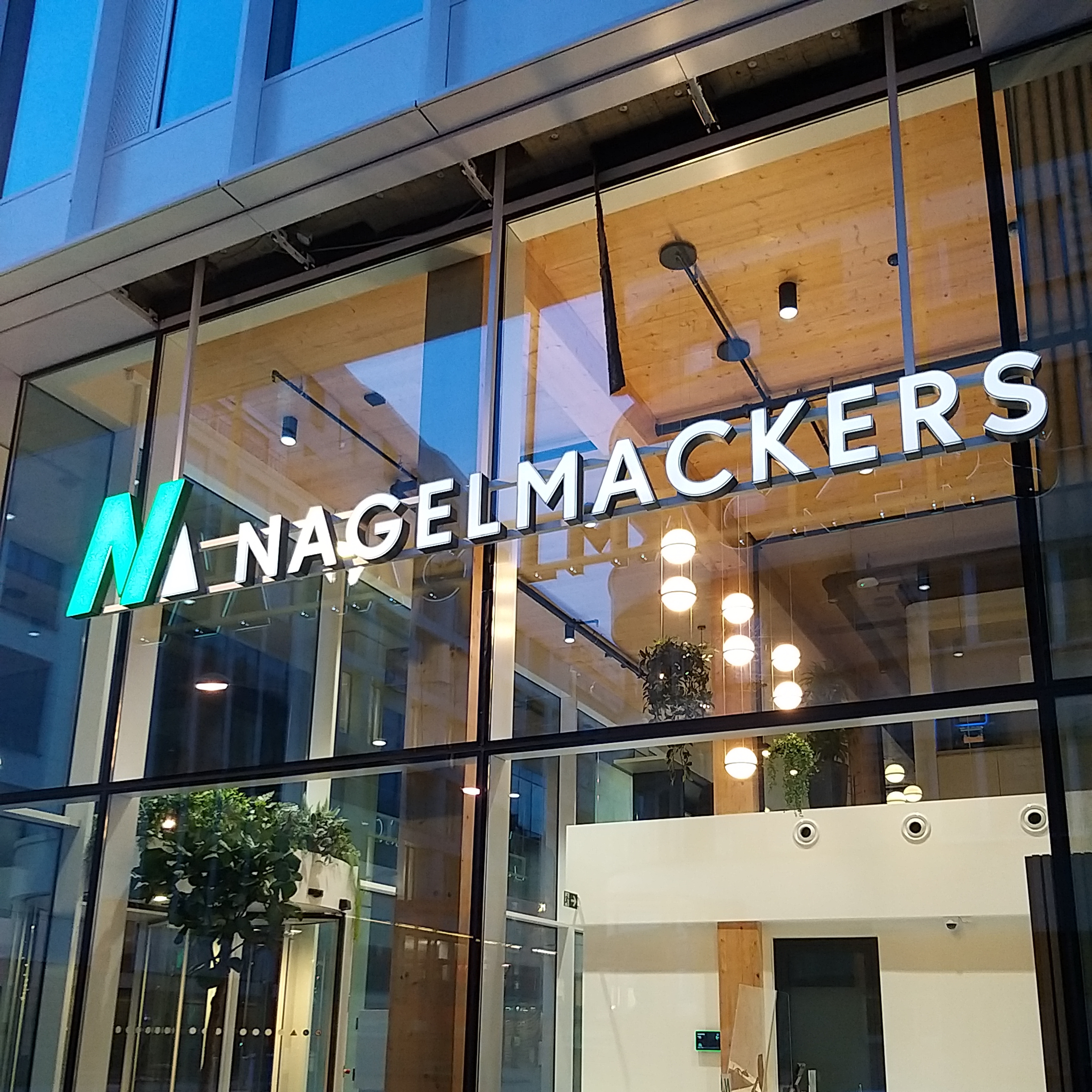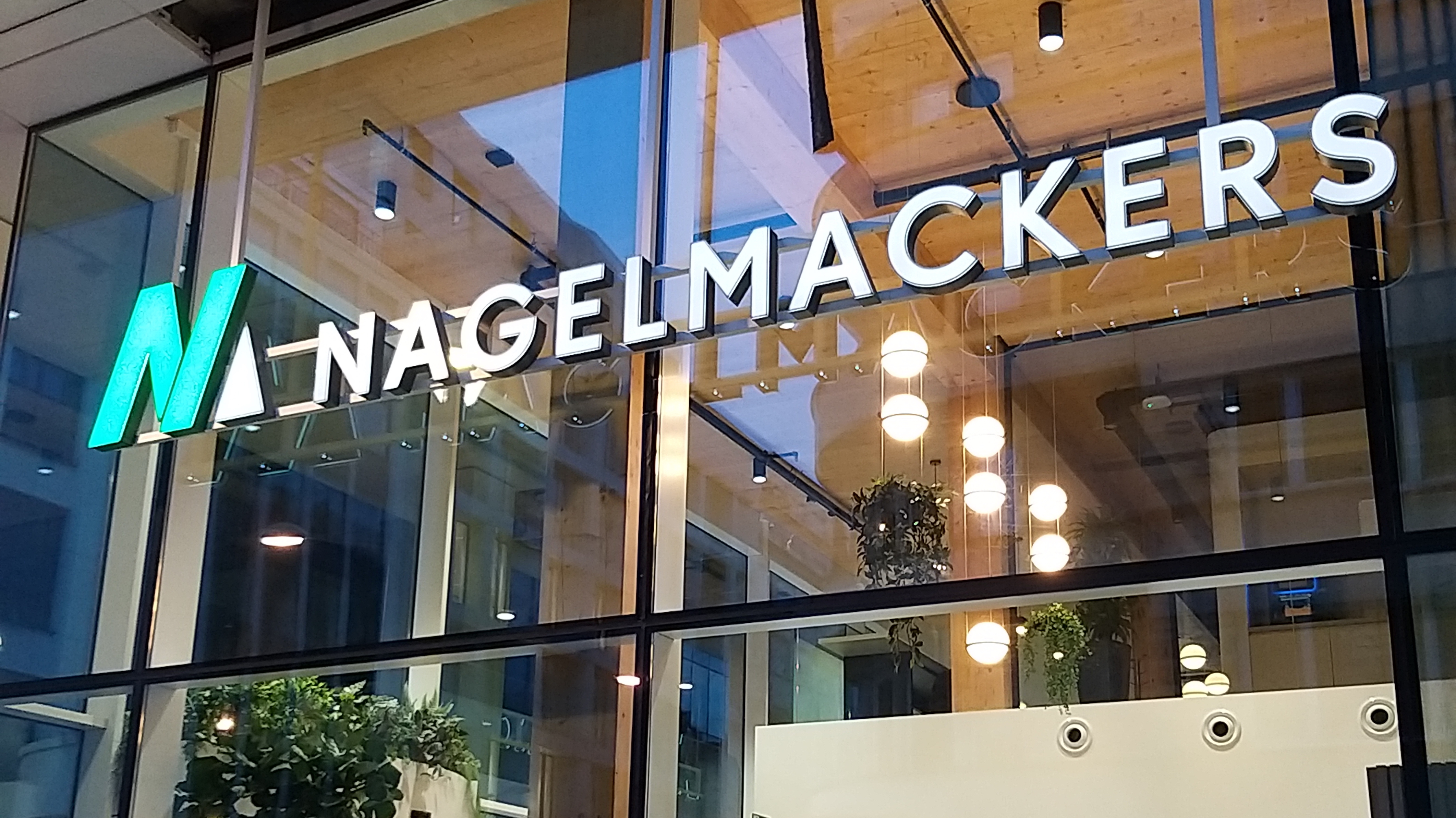 Façade vitrée d’une agence Nagelmackers en Belgique.