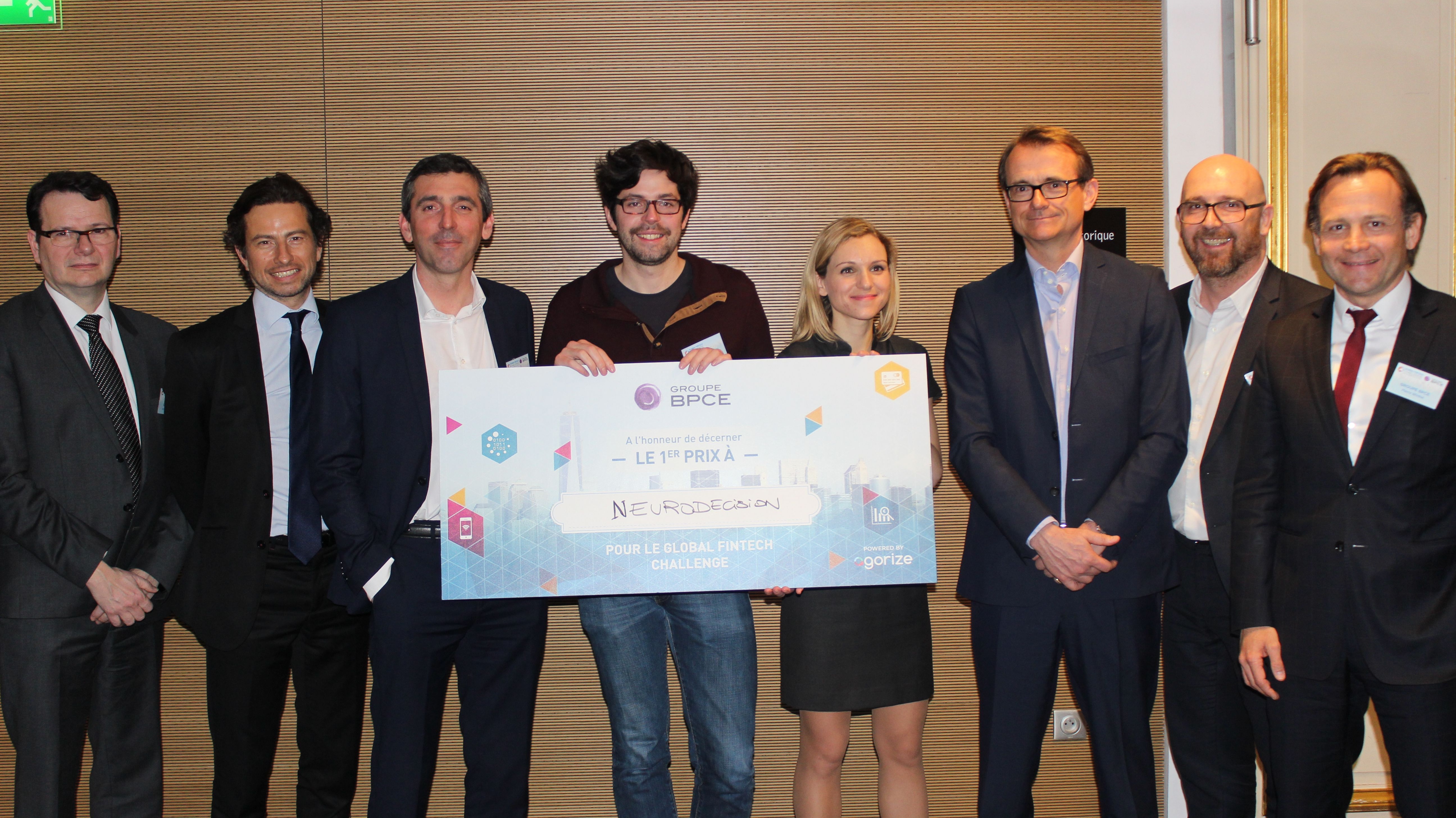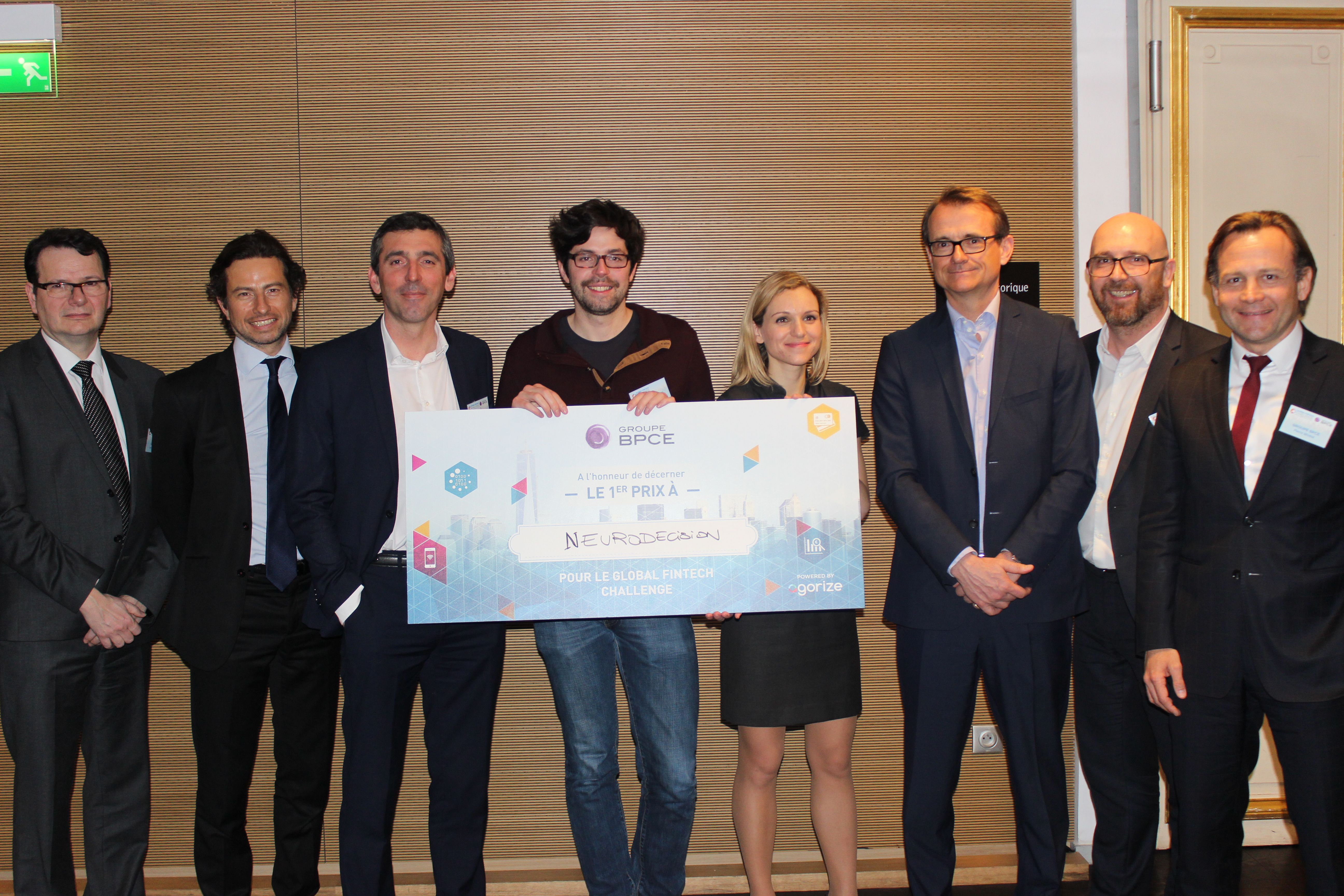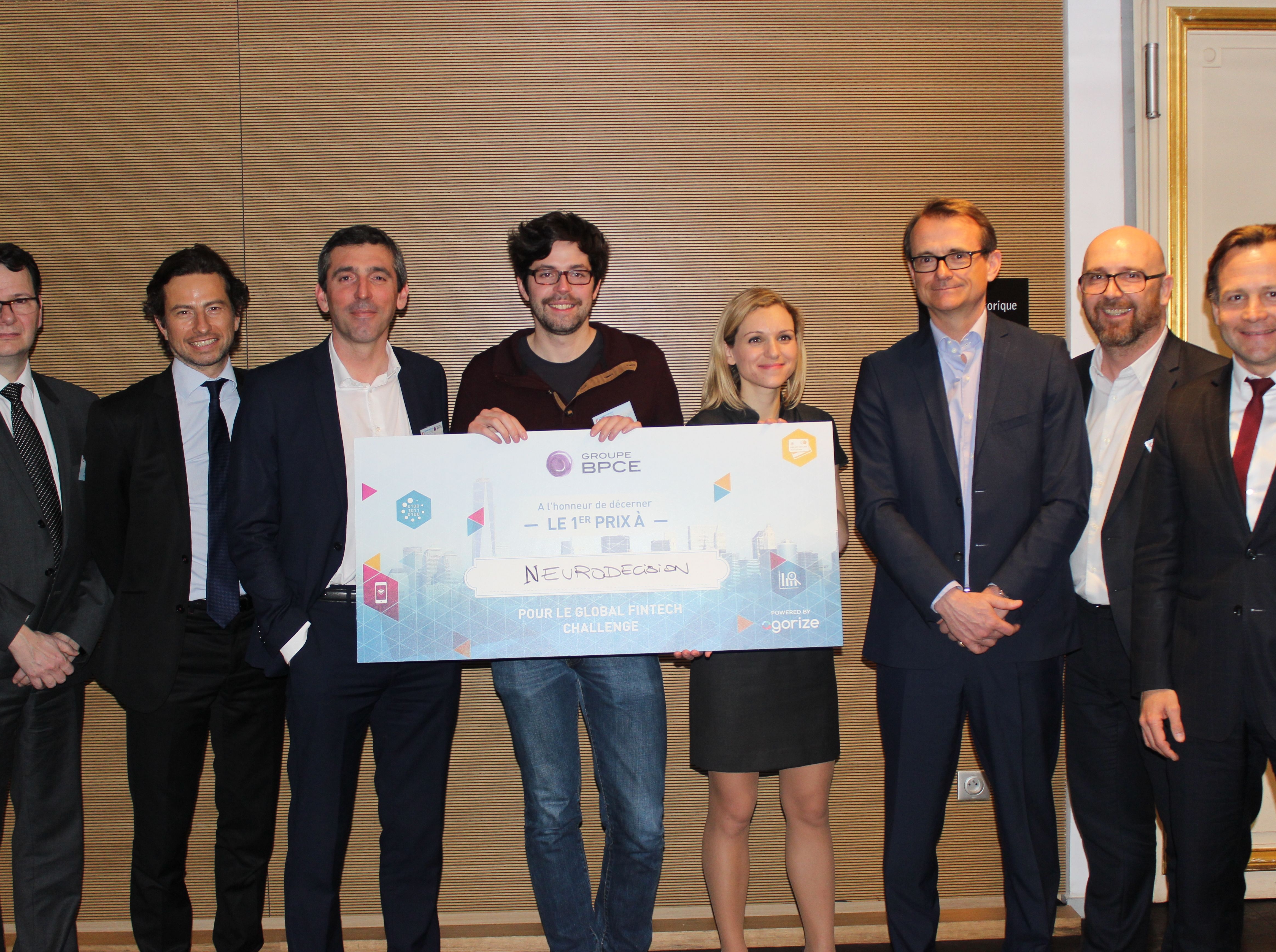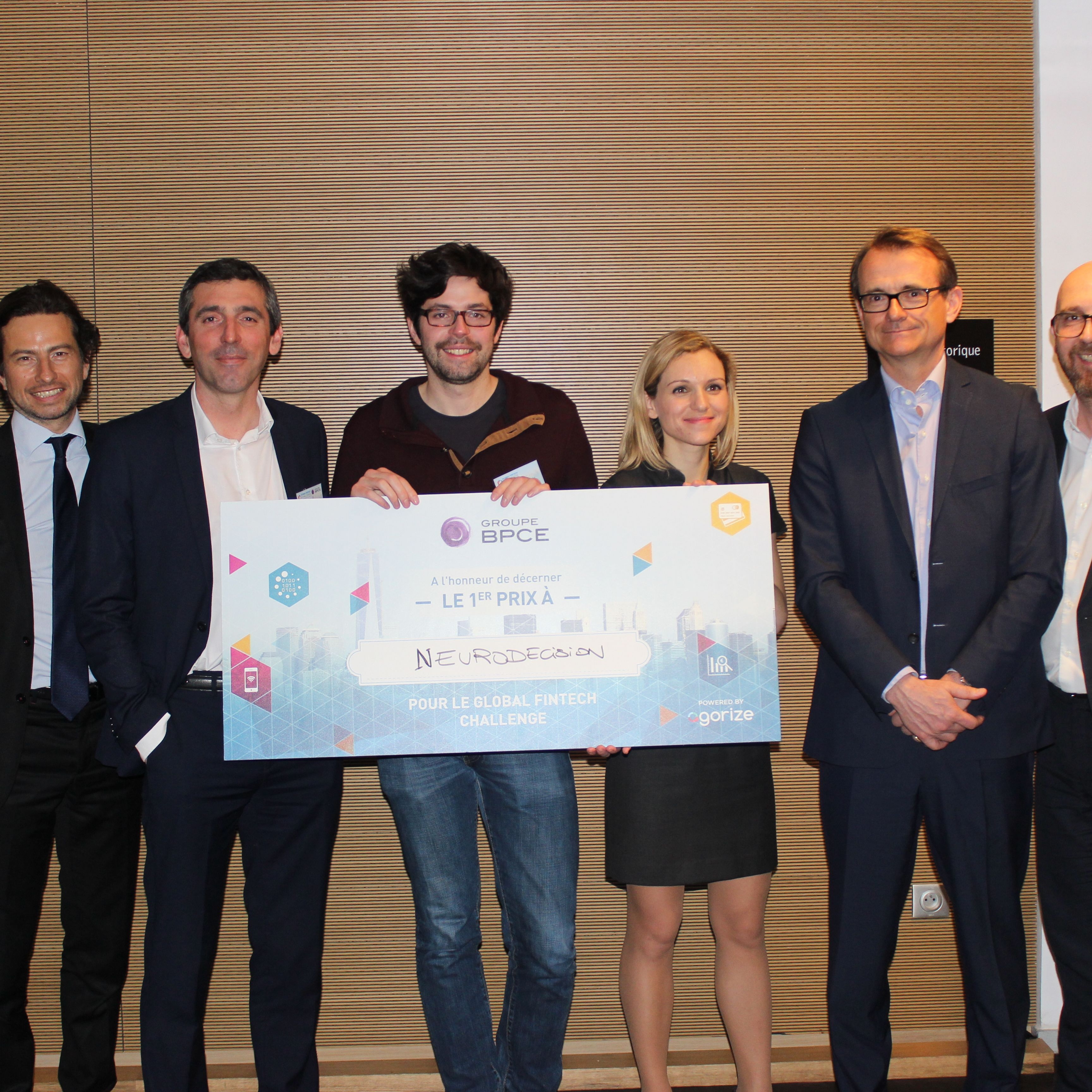 Remise du premier prix du Global Fintech Challenge du Groupe BPCE à l’équipe Neurodecision.