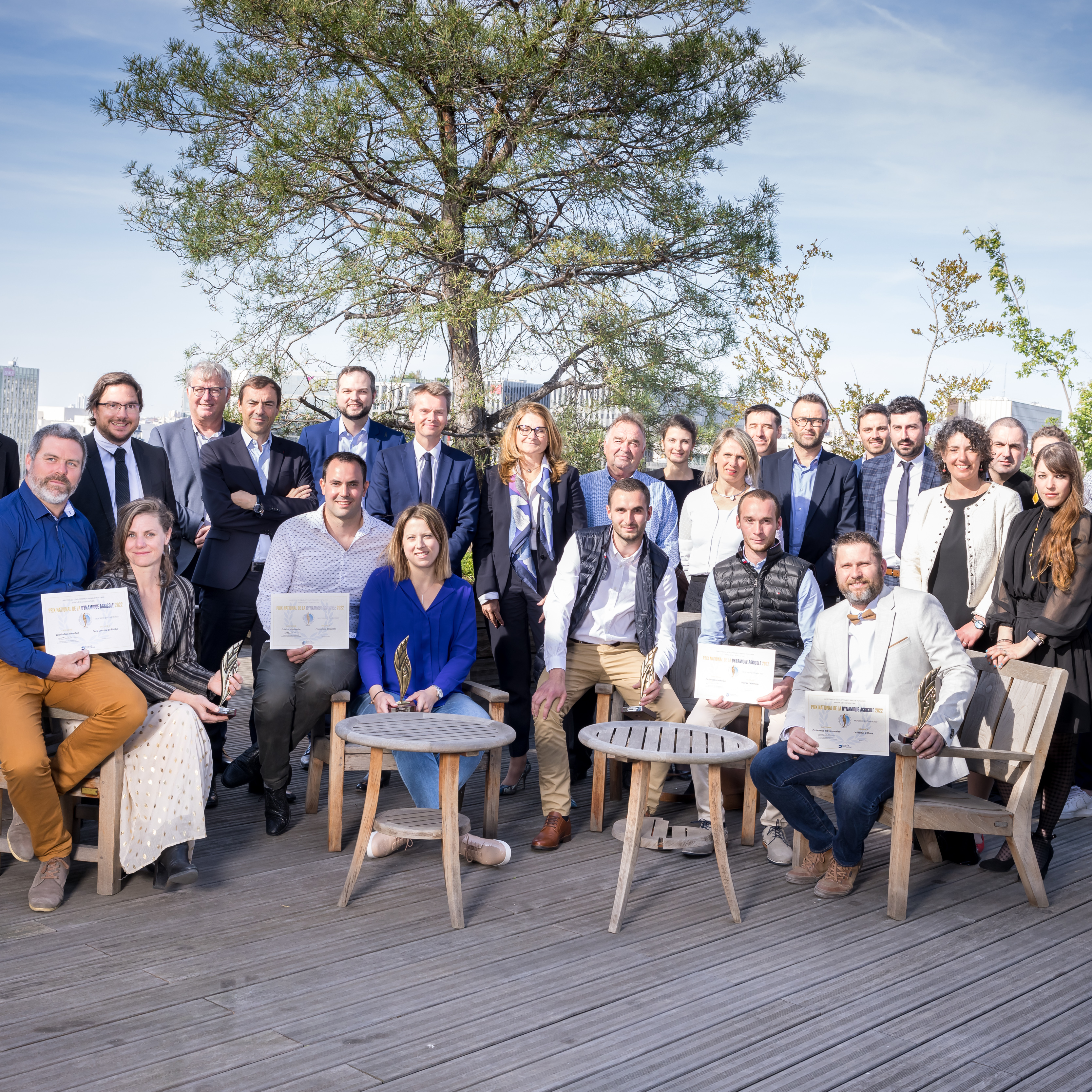 Photo de groupe des lauréats et organisateurs de la 30e édition du Prix National de la Dynamique Agricole Banque Populaire, réunis en extérieur pour une remise de prix valorisant innovation et performance agricole.