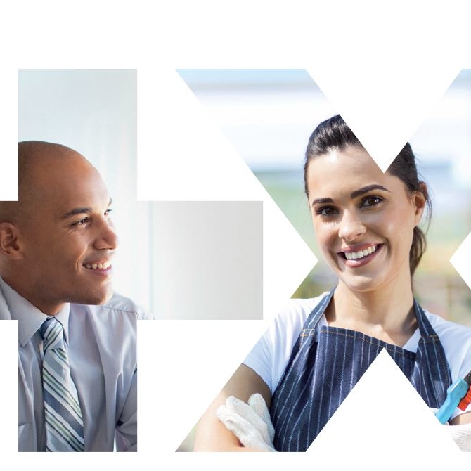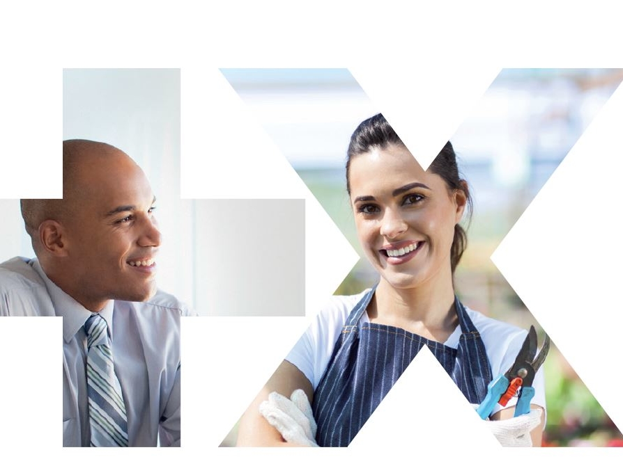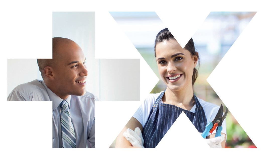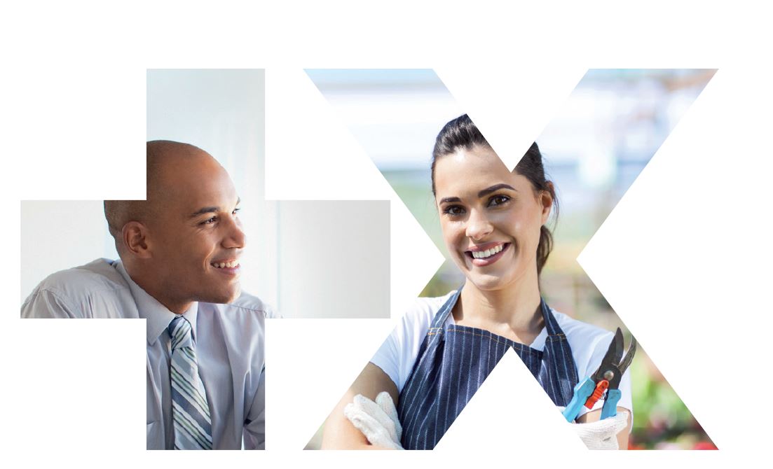 Visuels croisés de deux professionnels, symbolisant la diversité des clients entrepreneurs et artisans Banque Populaire assurés dans leurs activités.