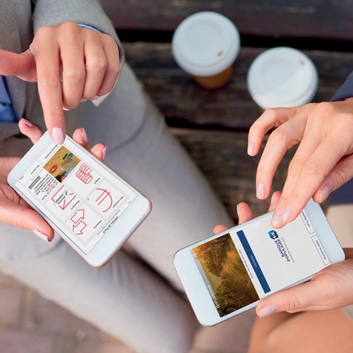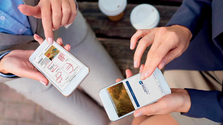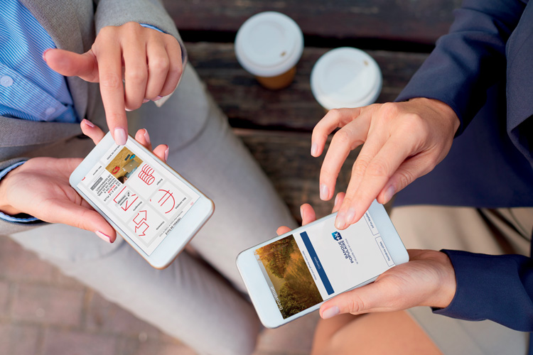 Professionnels utilisant des applications bancaires sur smartphone