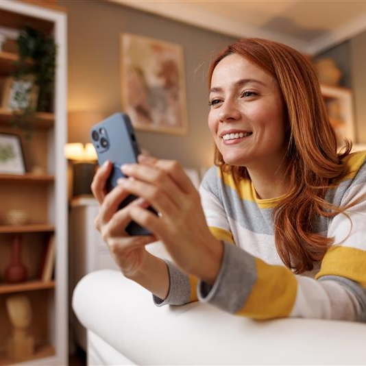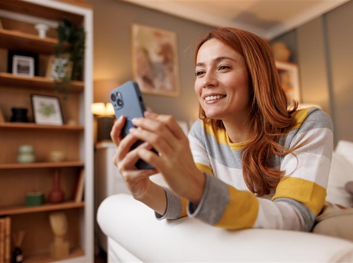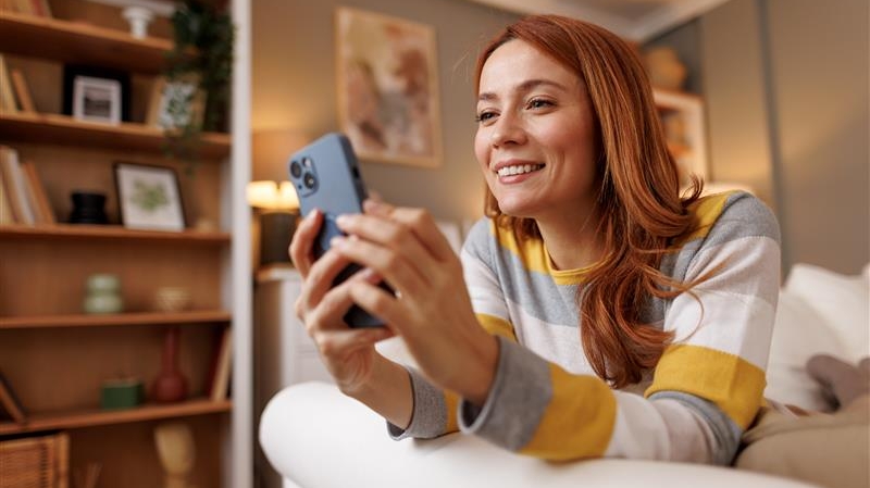 Une femme utilise l'application mobile Banque Populaire sur son smartphone..