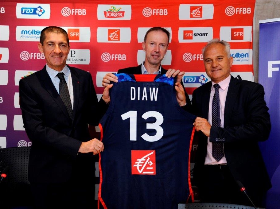 Jean-Pierre Siutat – Vincent Collet – Guillaume Cade lors de l'annonce de la prolongation du partenariat entre la Caisse d'Epargne et la FFBB