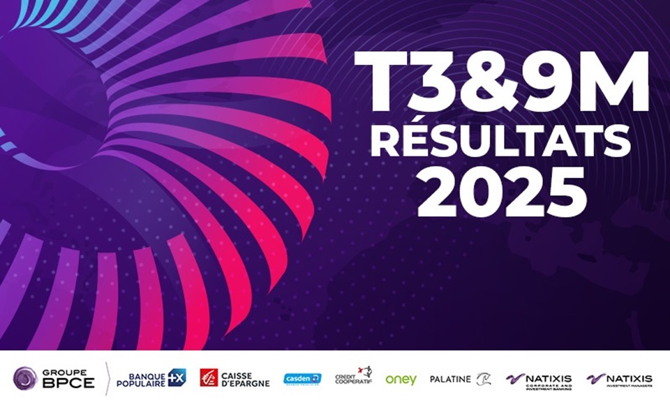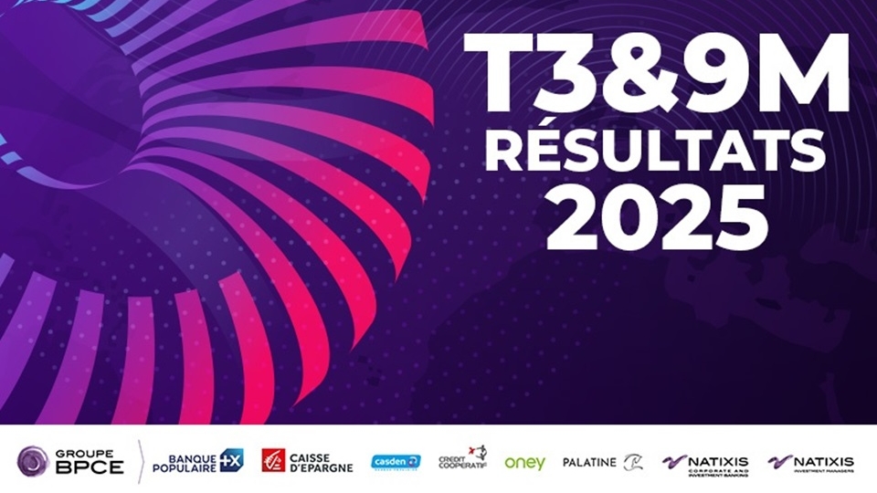 Visuel officiel présentant les résultats du 3e trimestre et des 9 premiers mois 2025 du Groupe BPCE, avec logos des principales entités du groupe.