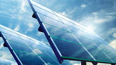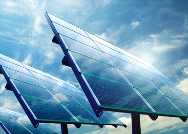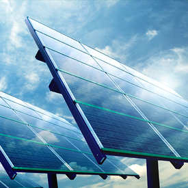 Panneaux solaires photovoltaïques installés à l'extérieur sous un ciel bleu, illustrant la production d'énergie renouvelable.