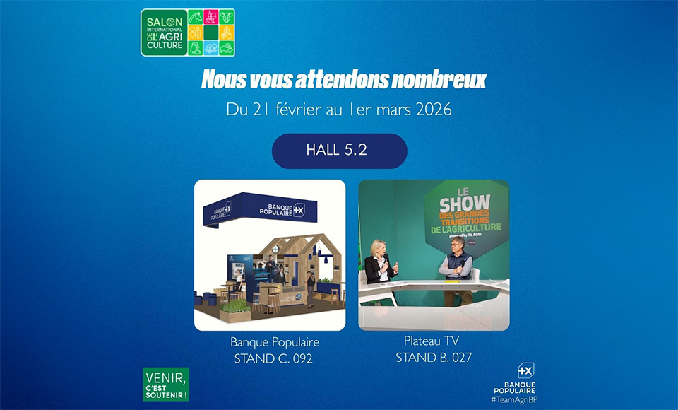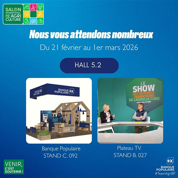 Affiche promotionnelle du Salon Culture du 21 février au 1er mars 2026 avec stands Banque Populaire OZ et B07, et espace show TV.
